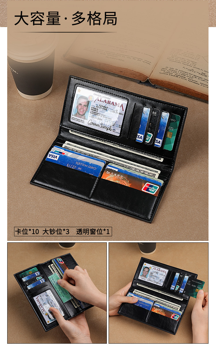 소스 공장 도매 남성용 정품 가죽 지갑 대용량 현금 클립 RFID 도난 방지 사진 앨범 동전 지갑