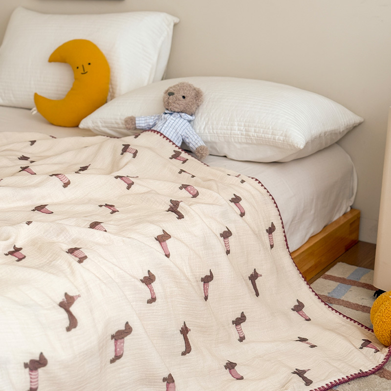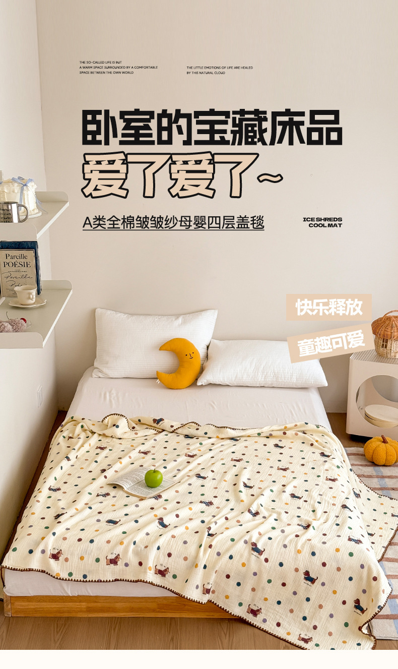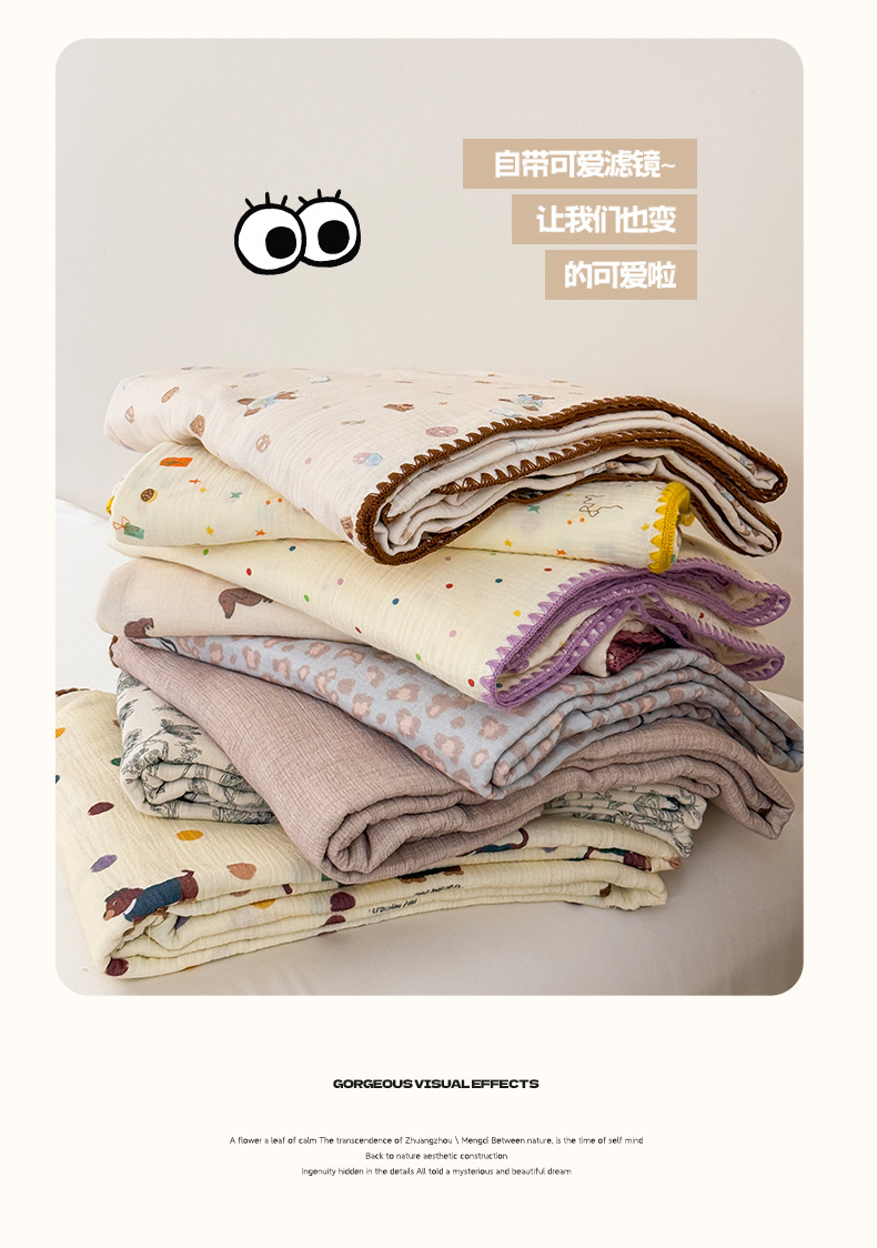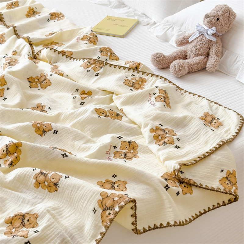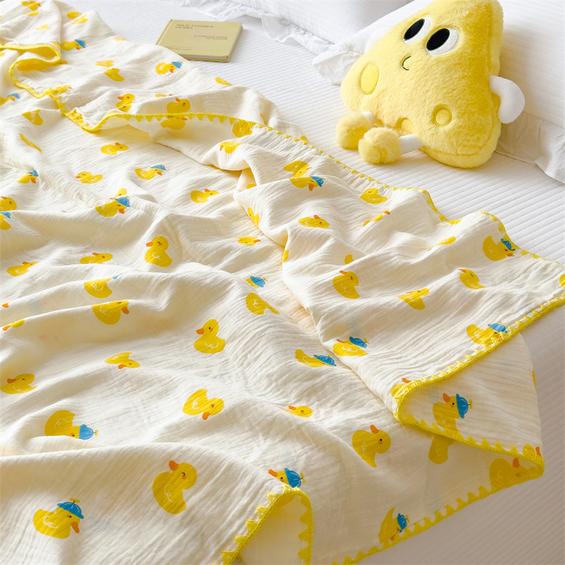 클래스 A 모성 및 유아용 면화 주름 원사 여름 이불 100 면 4 층 거즈 커버 만화 어린이 얇은 이불 에어컨 이불