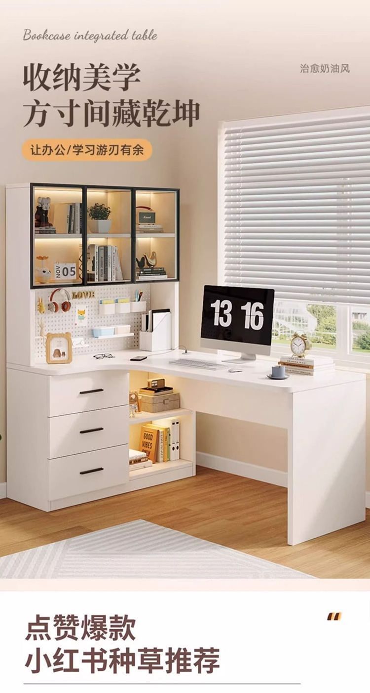 • 크림 화이트 코너 책상 + DIY 홀 보드-왼쪽 캐비닛