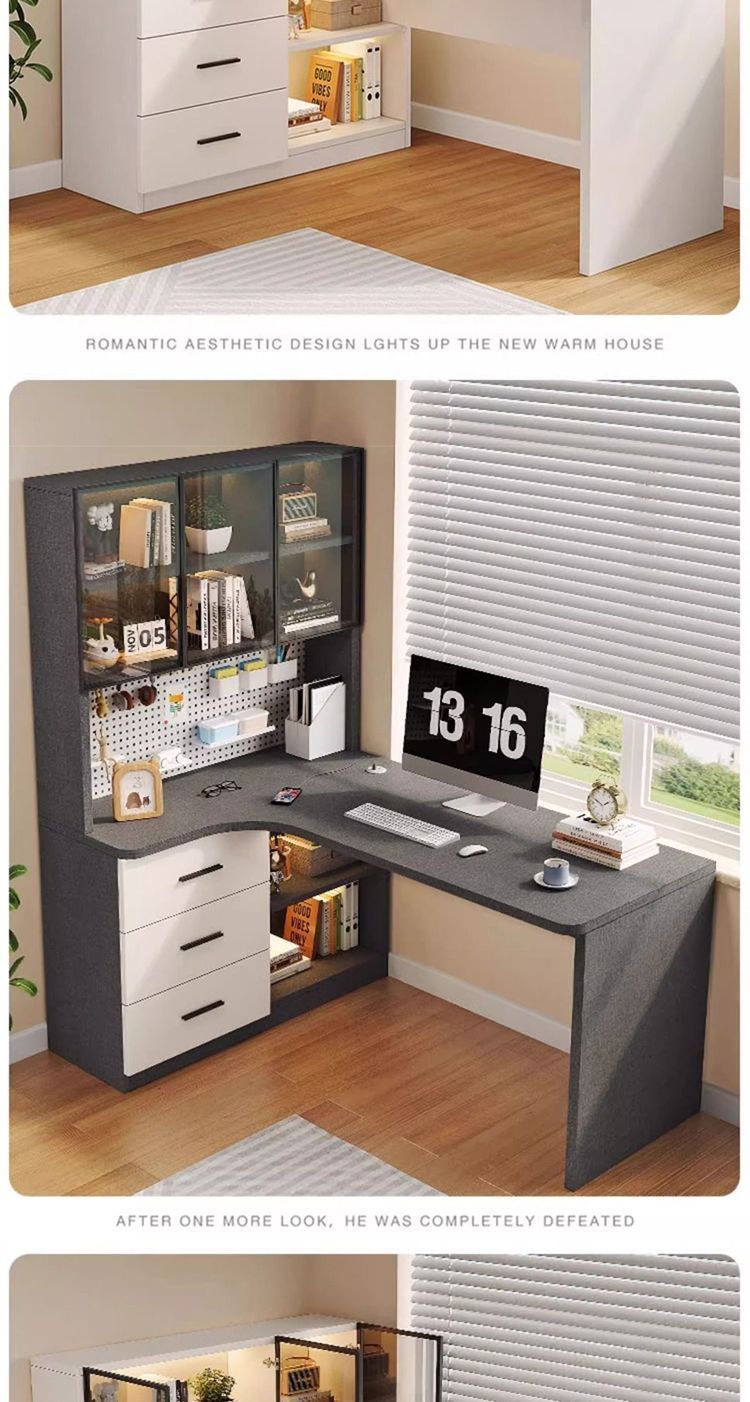 • 고급 회색 코너 책상 + DIY 천공 보드 - 오른쪽 캐비닛