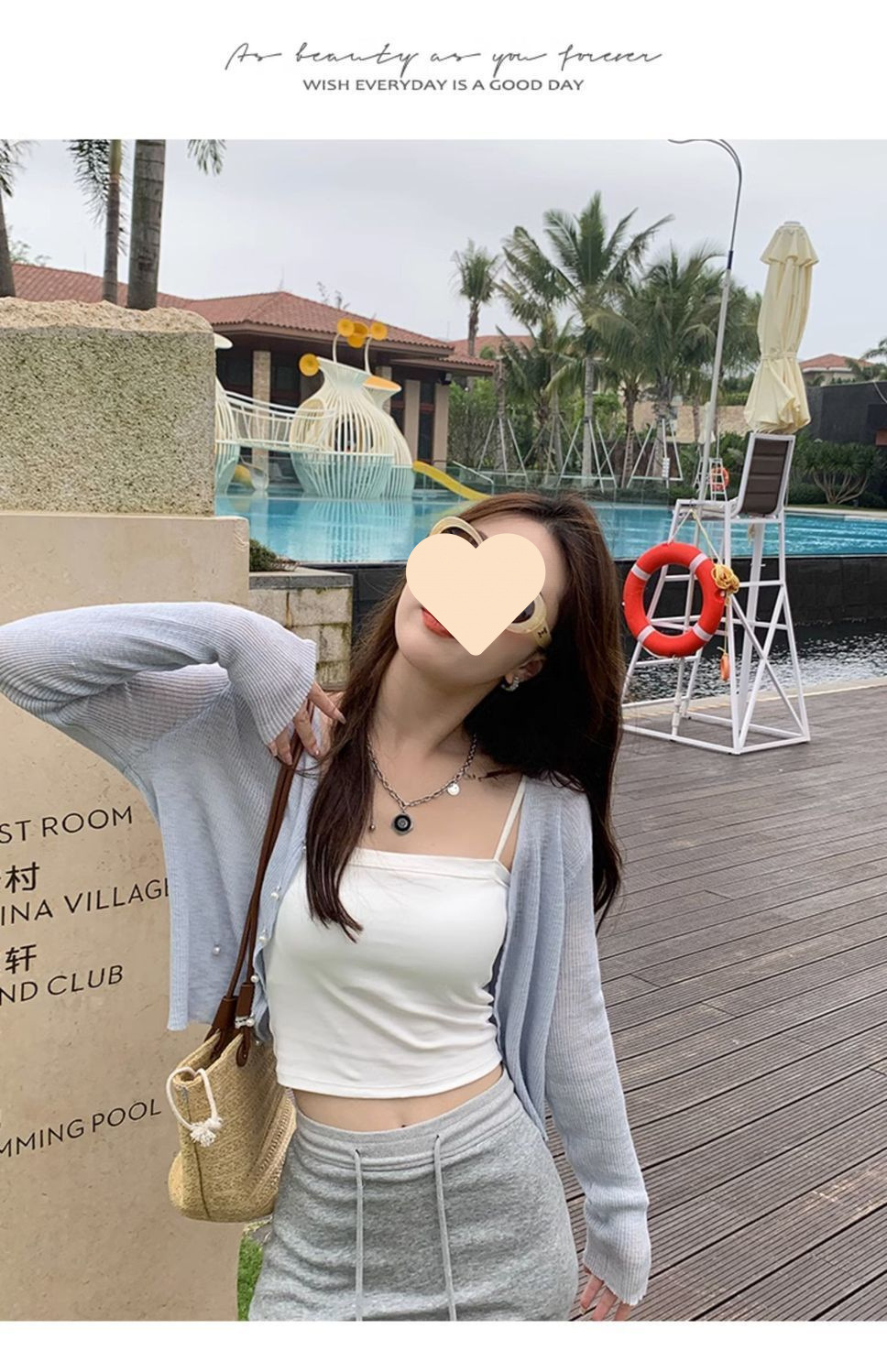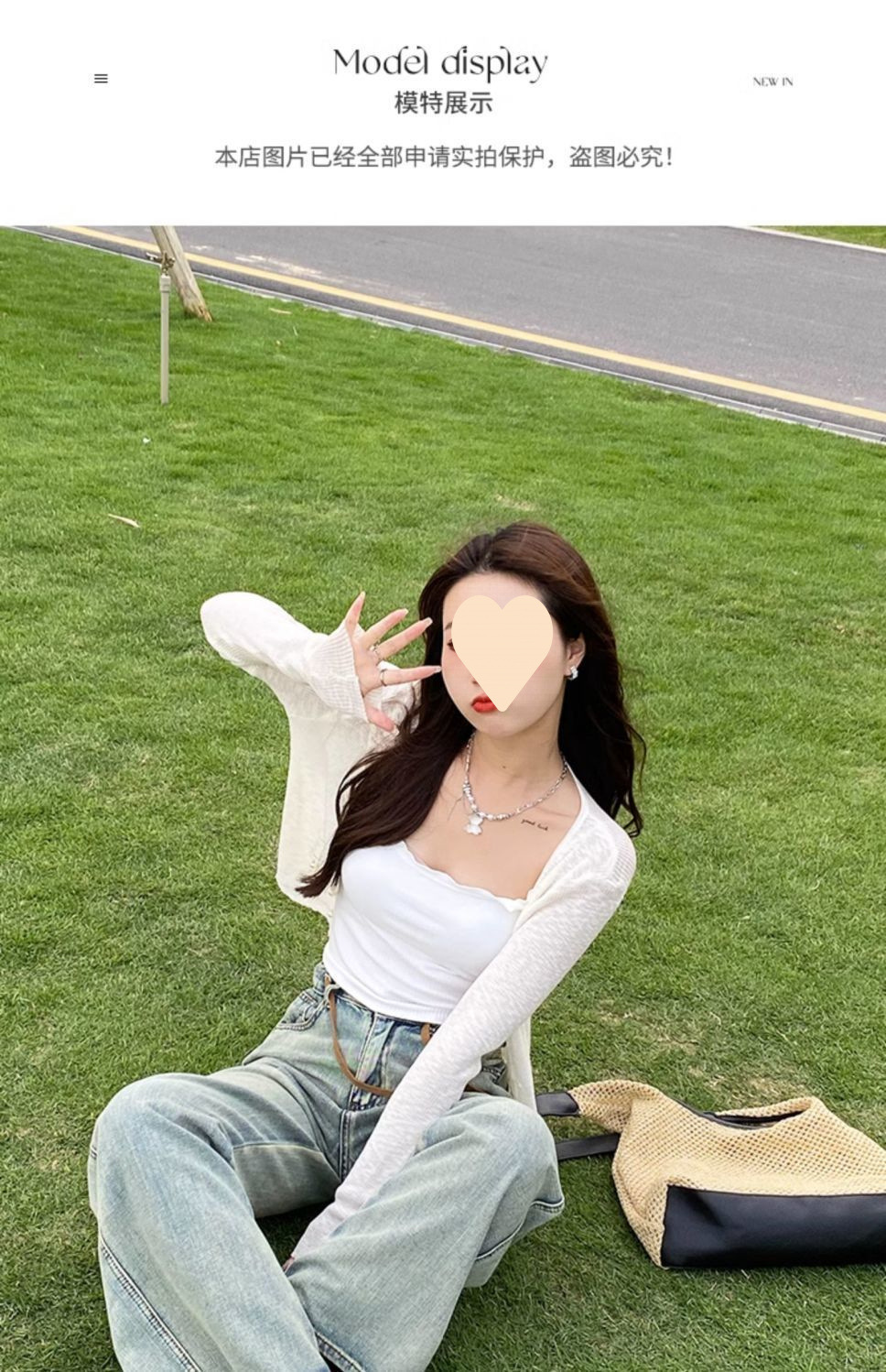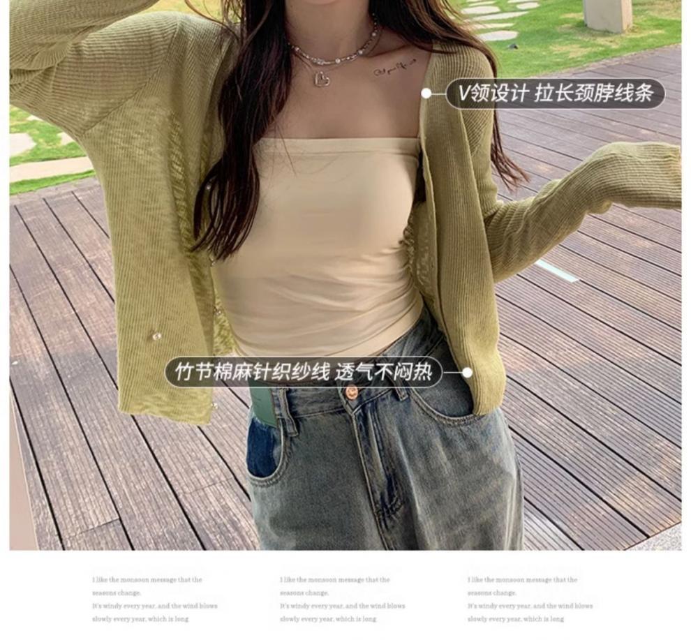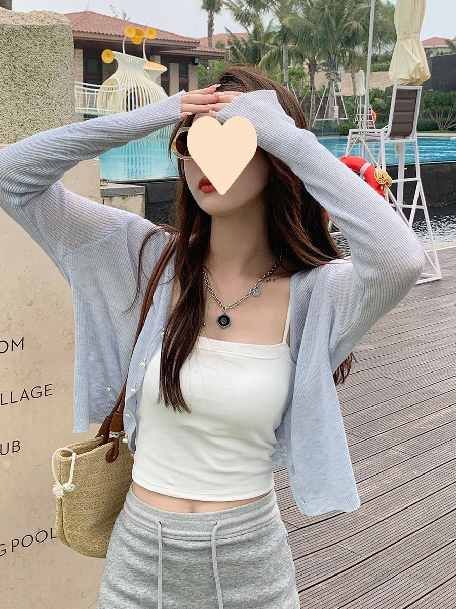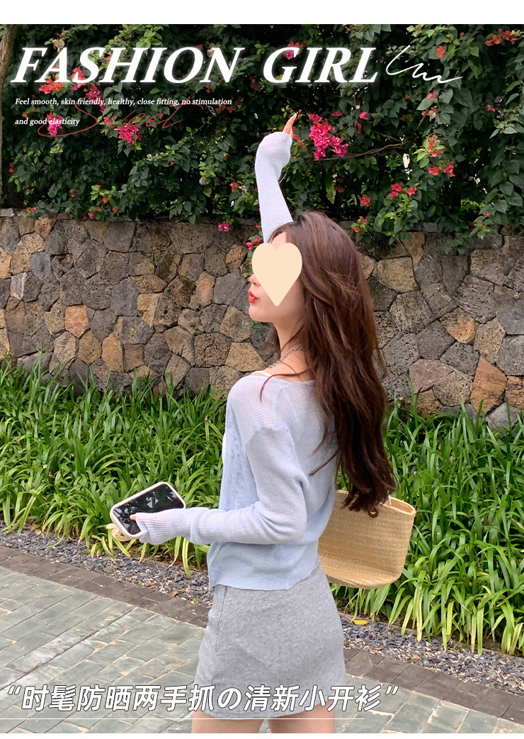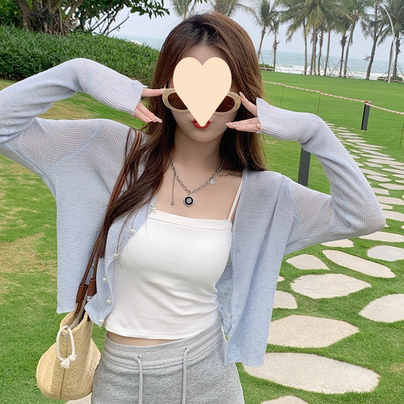 아이스 실크 툴레 목도리 슬링 외부 스트랩 블라우스 썬 스크린 카디건 여성 여름 에어컨 셔츠 웨이스트 코트 짧은 니트 탑