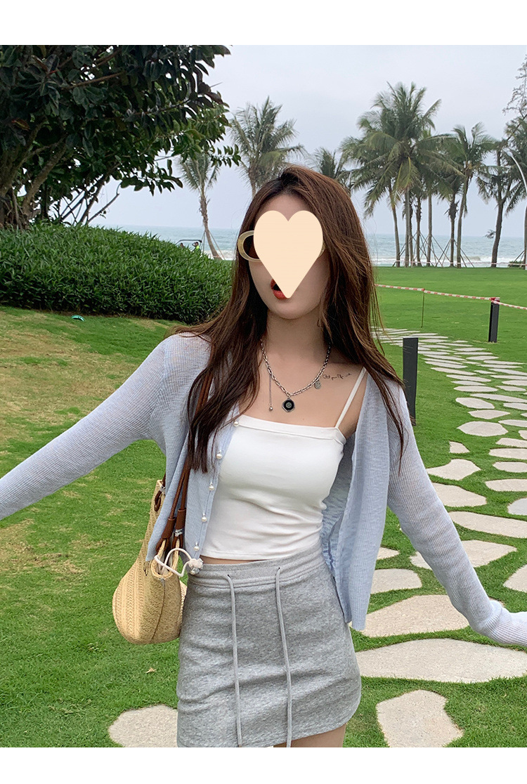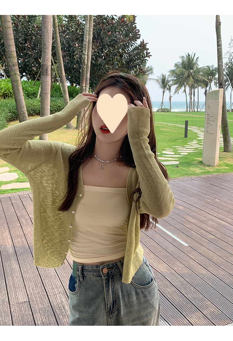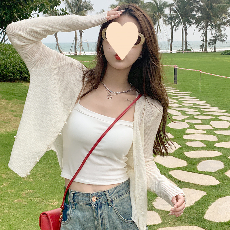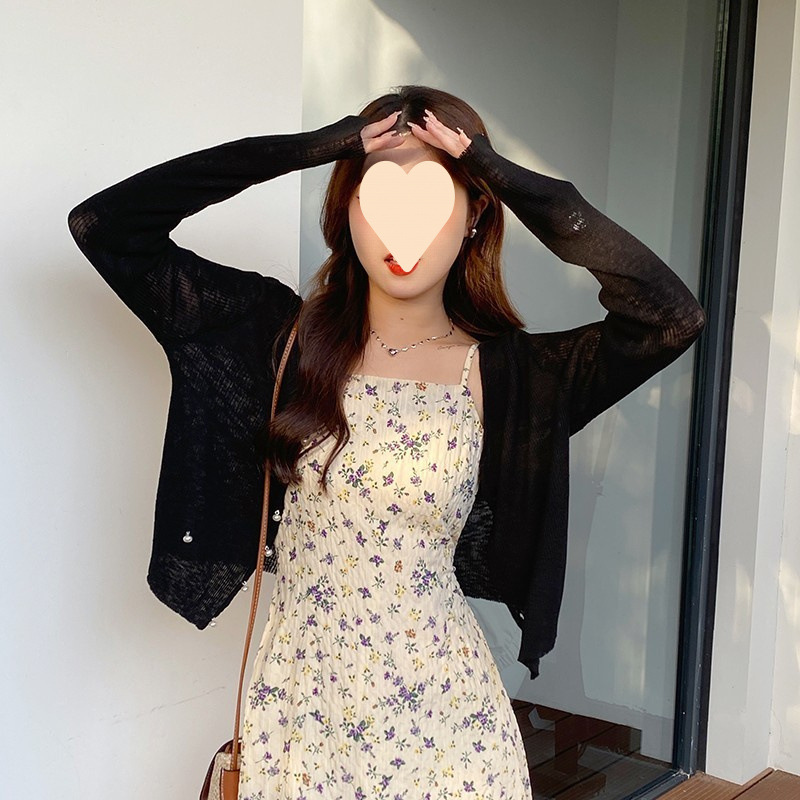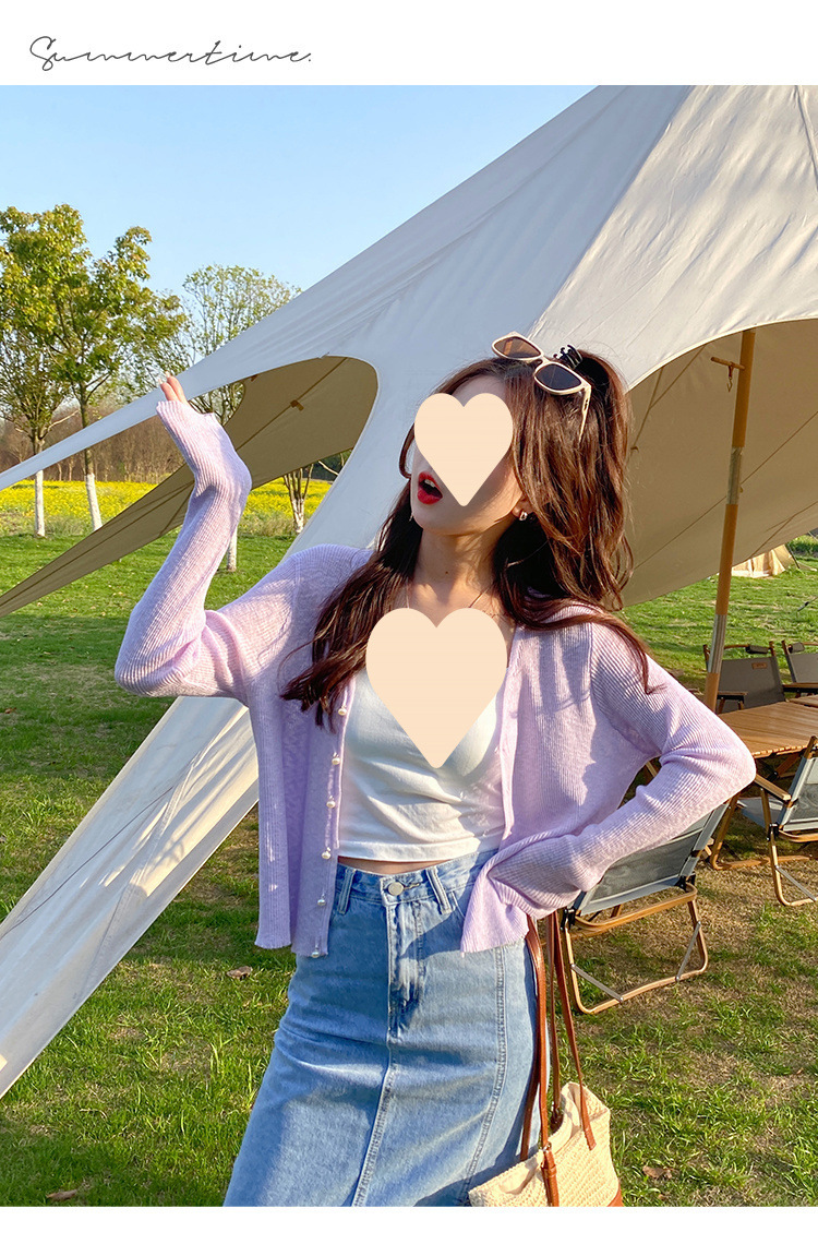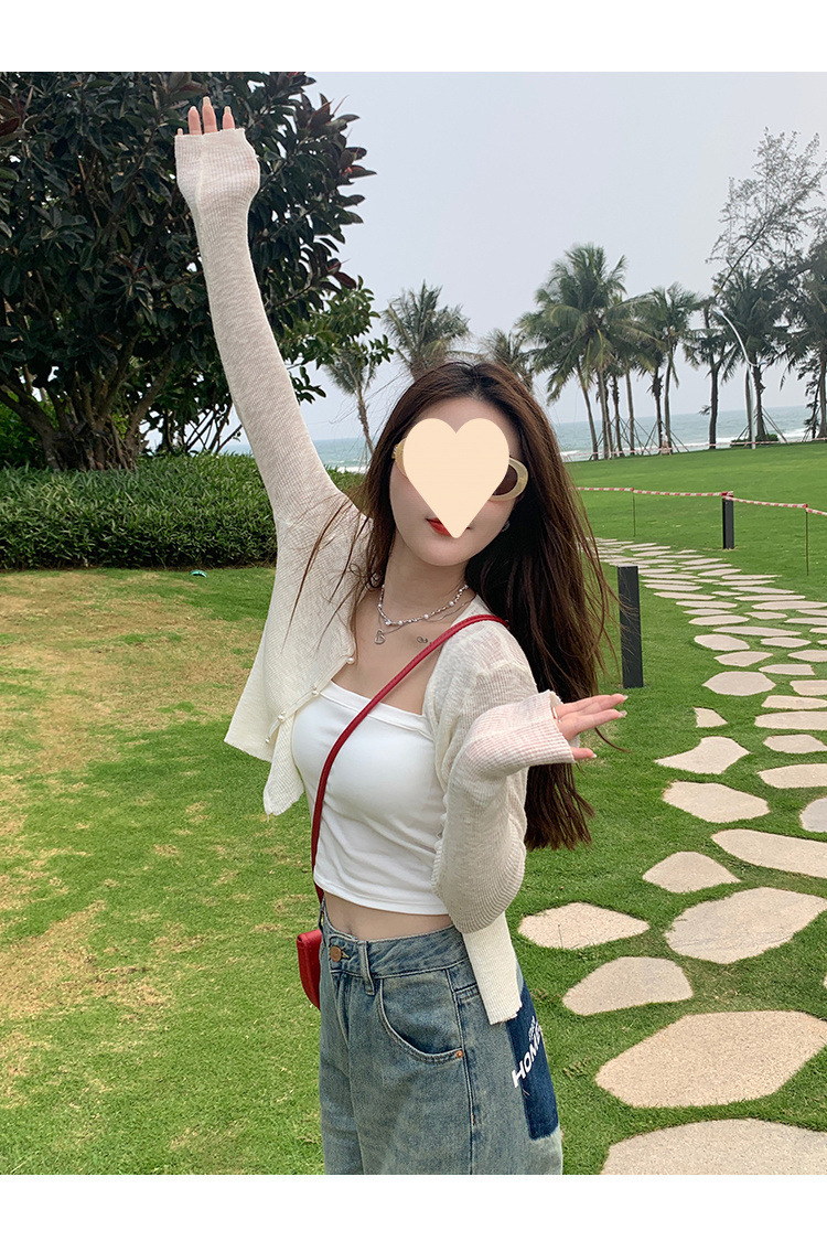 아이스 실크 툴레 목도리 슬링 외부 스트랩 블라우스 썬 스크린 카디건 여성 여름 에어컨 셔츠 웨이스트 코트 짧은 니트 탑