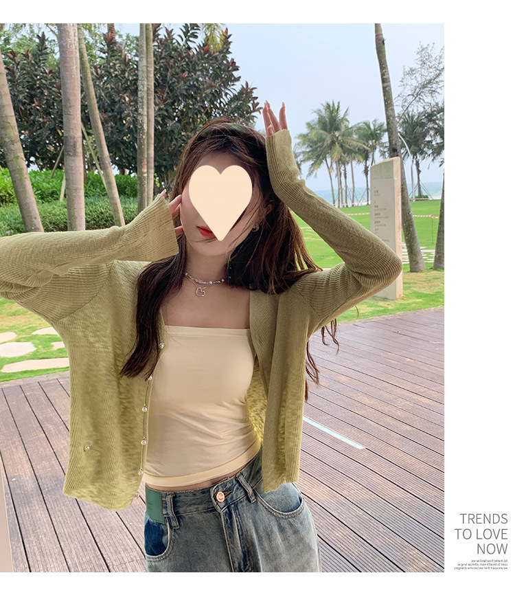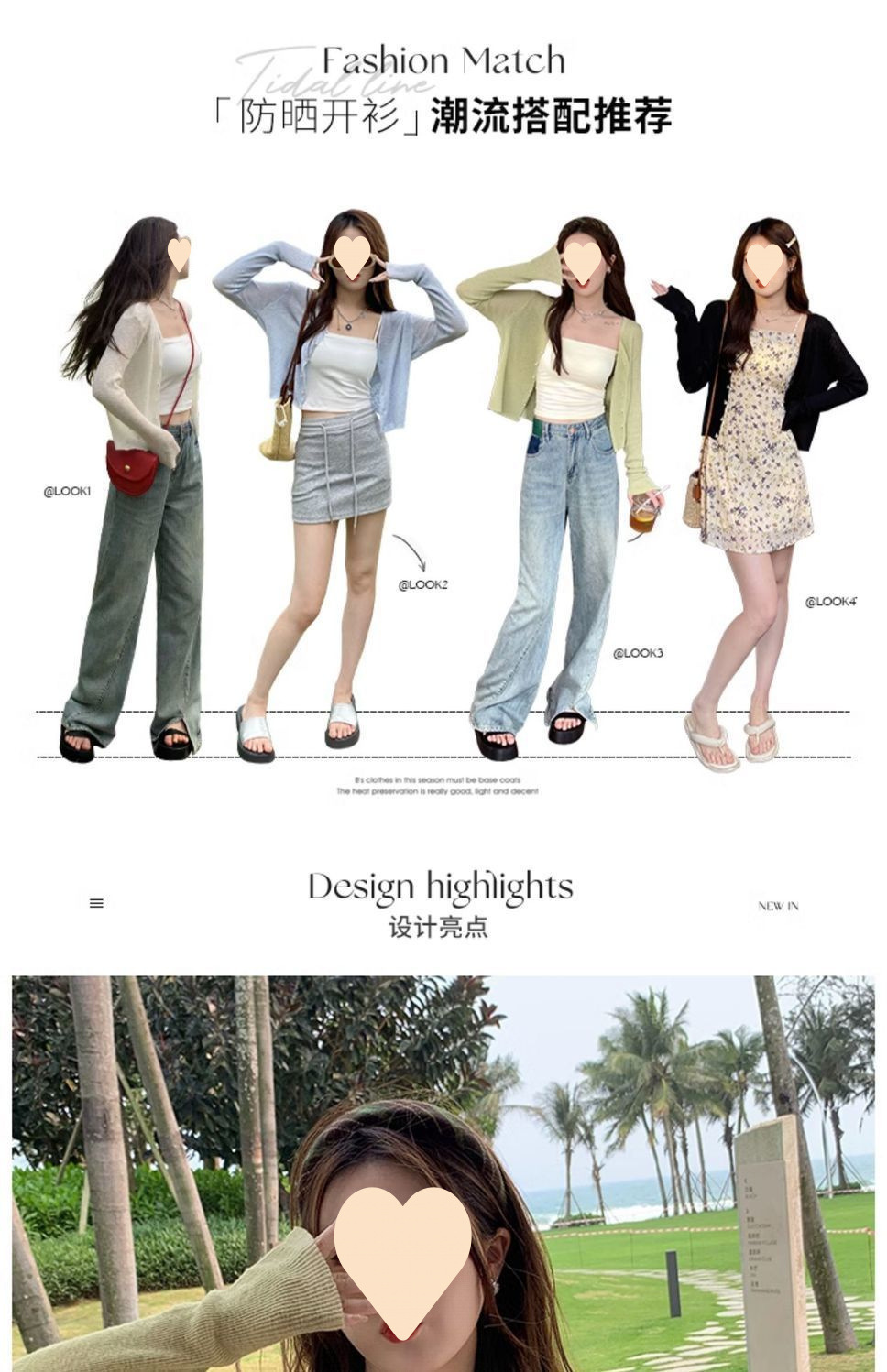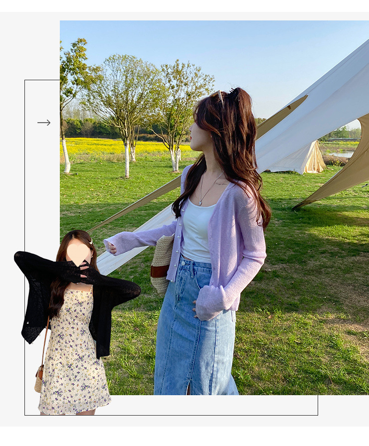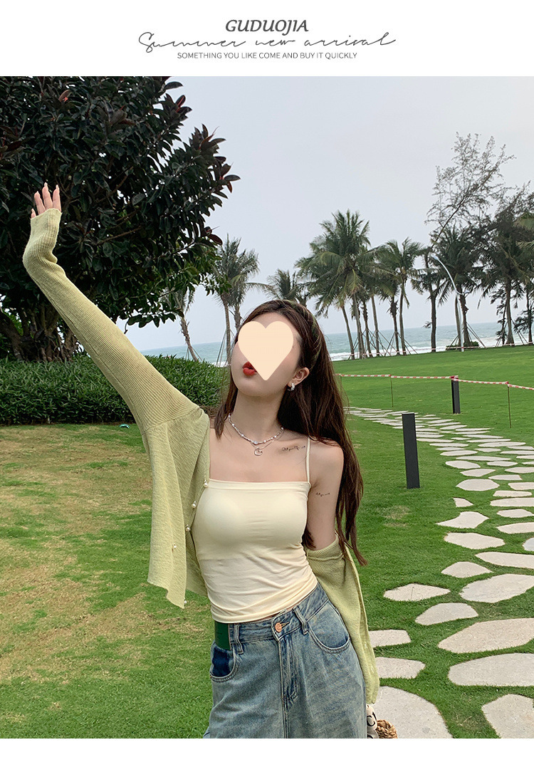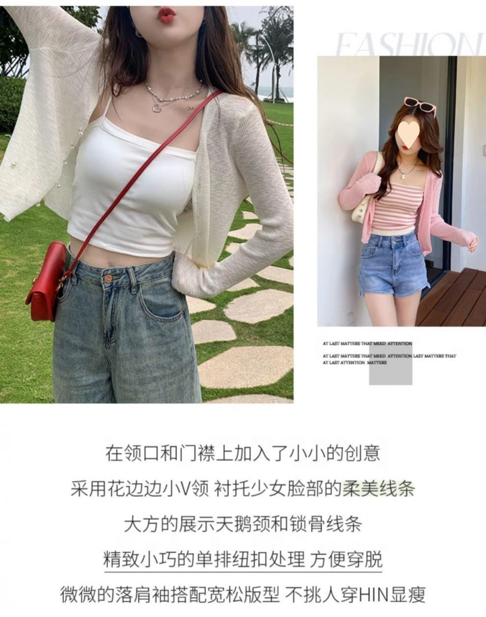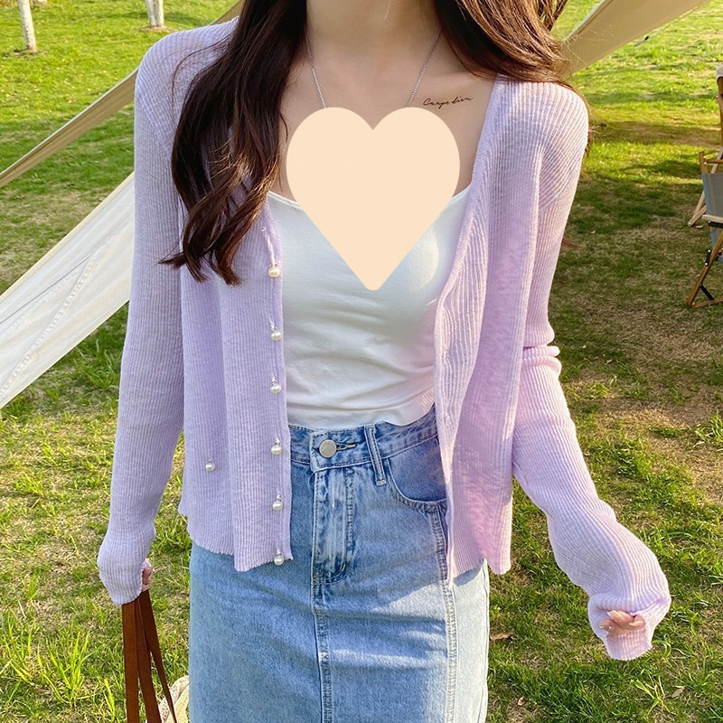 아이스 실크 툴레 목도리 슬링 외부 스트랩 블라우스 썬 스크린 카디건 여성 여름 에어컨 셔츠 웨이스트 코트 짧은 니트 탑