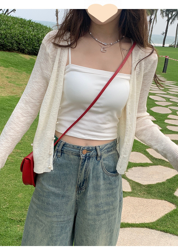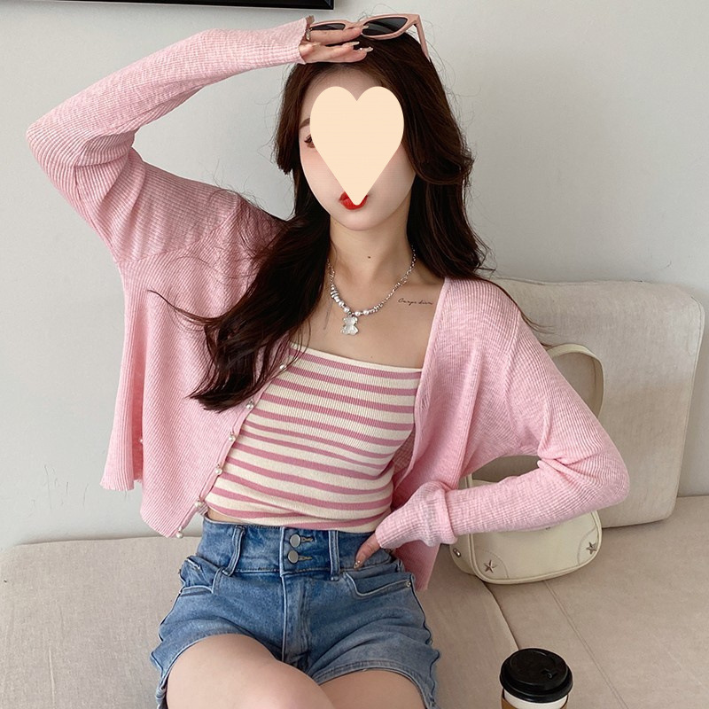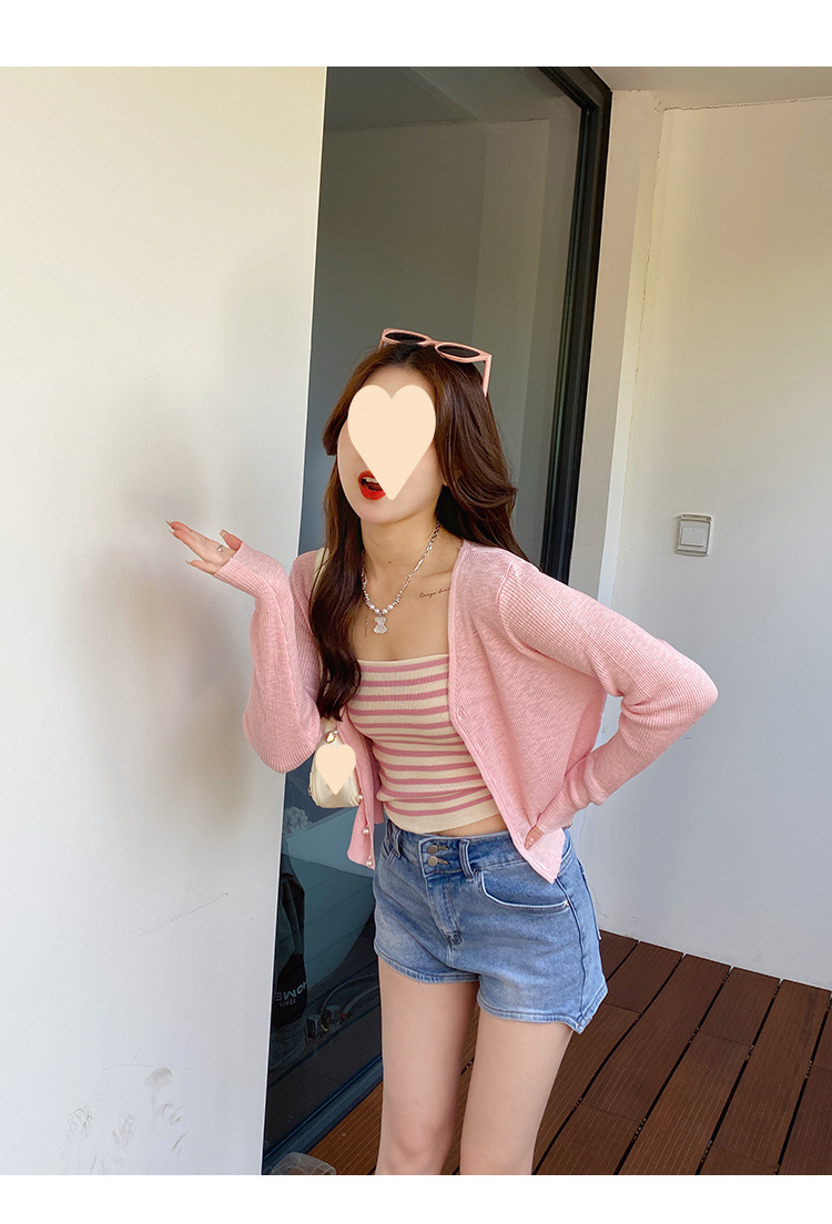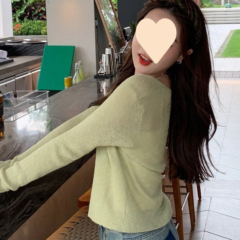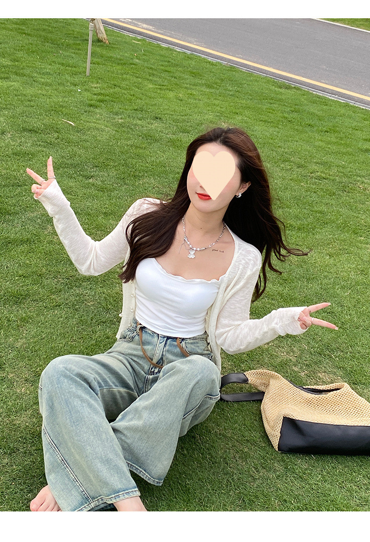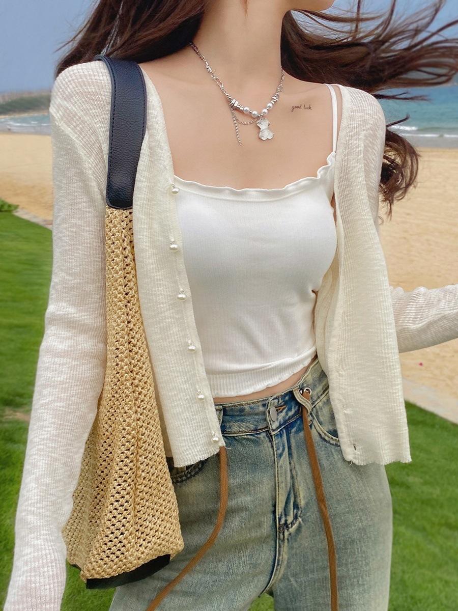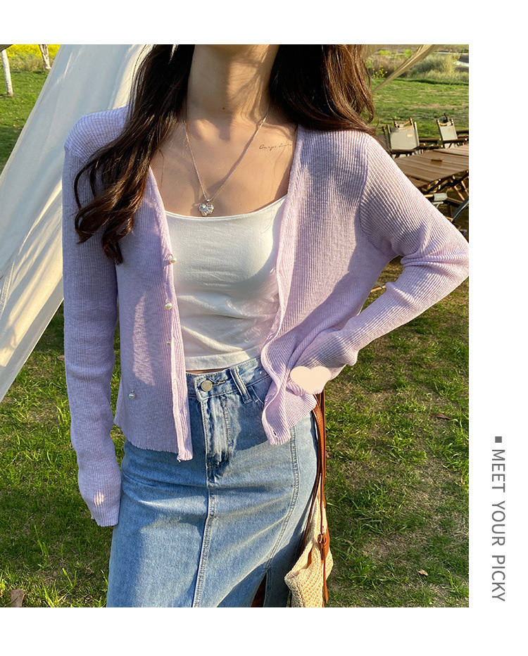 아이스 실크 툴레 목도리 슬링 외부 스트랩 블라우스 썬 스크린 카디건 여성 여름 에어컨 셔츠 웨이스트 코트 짧은 니트 탑