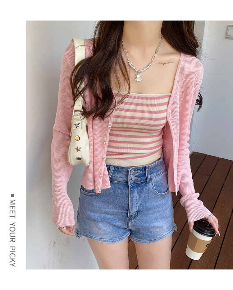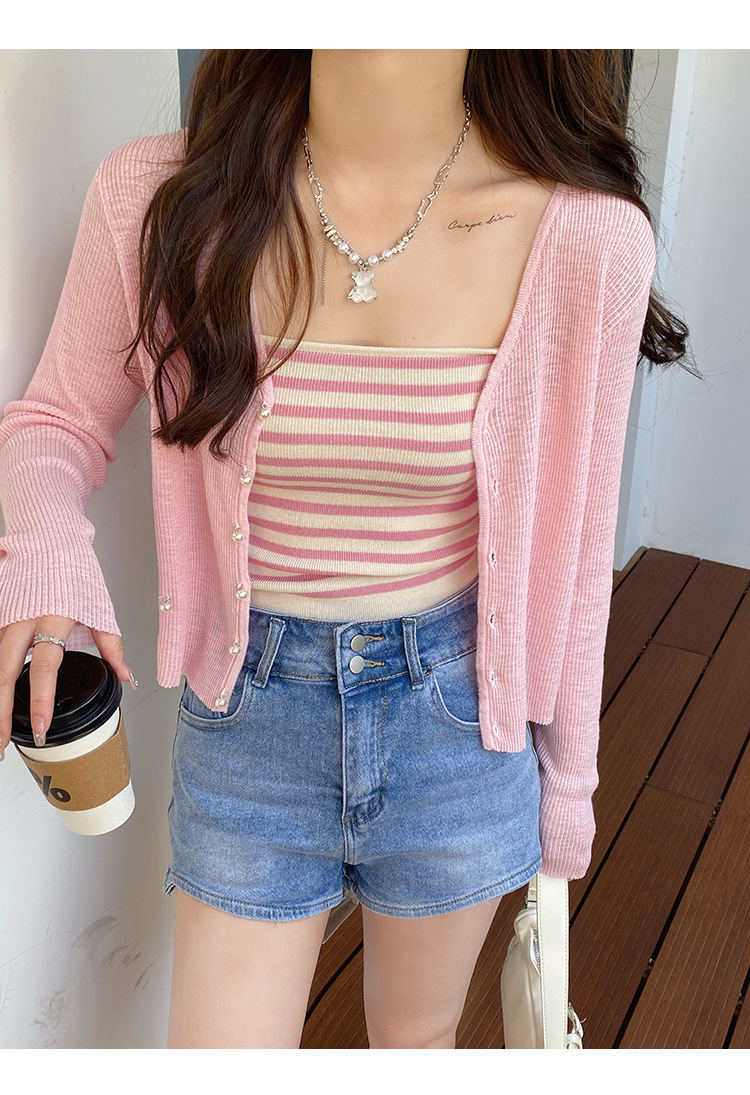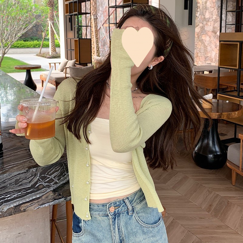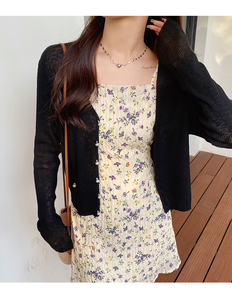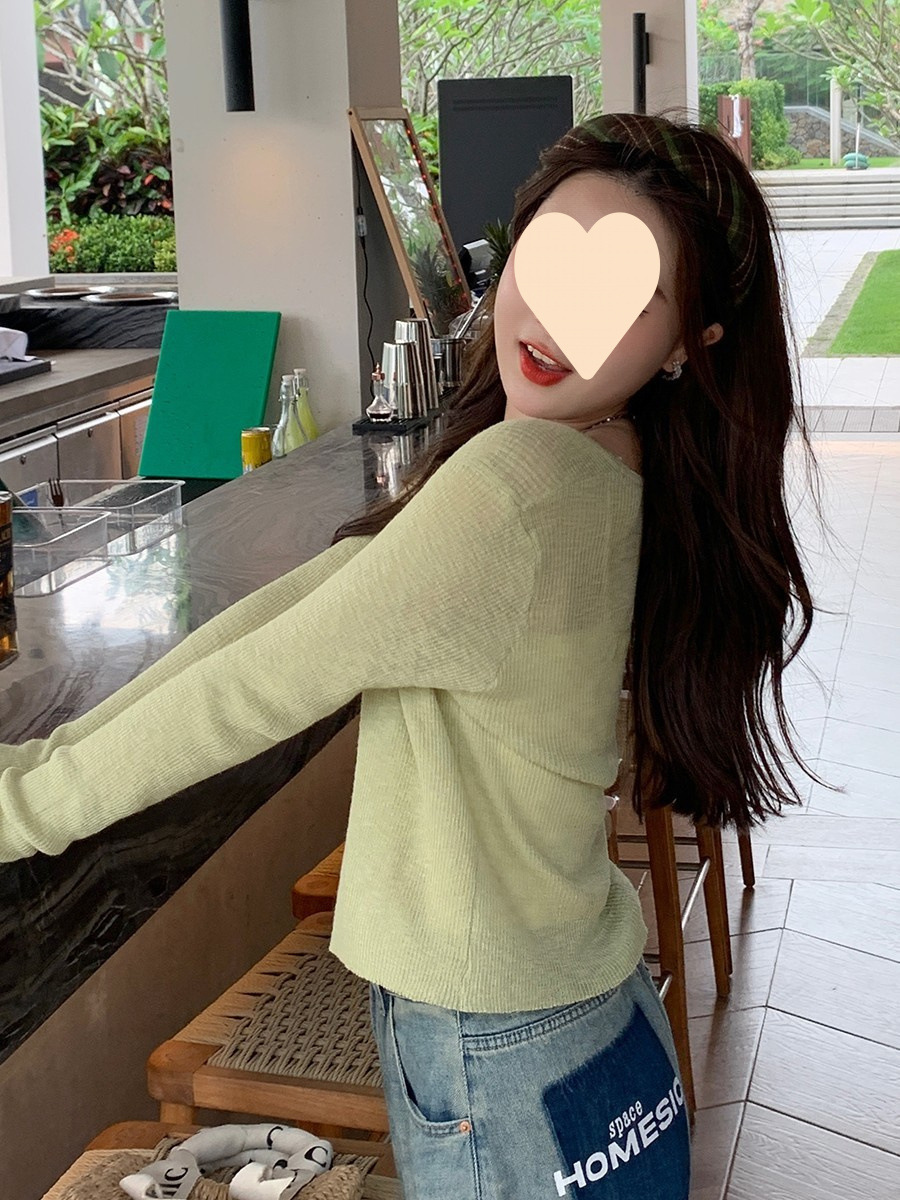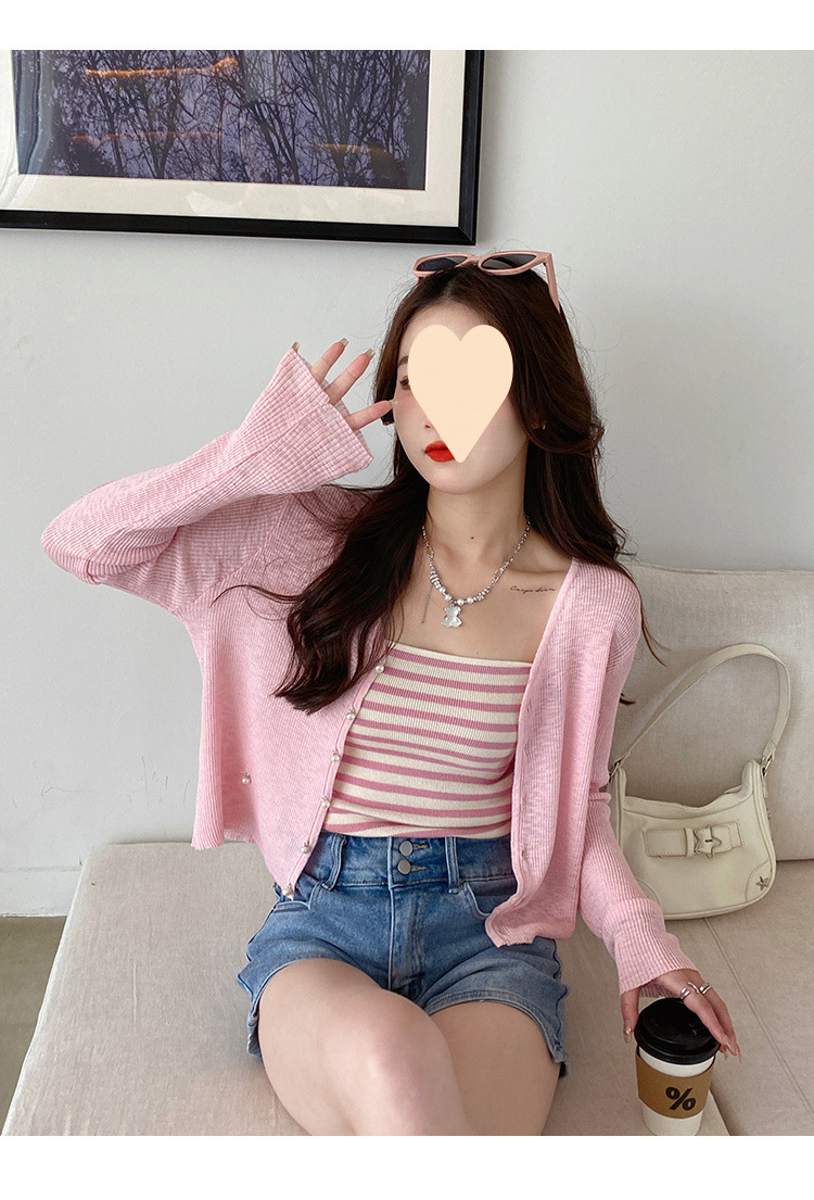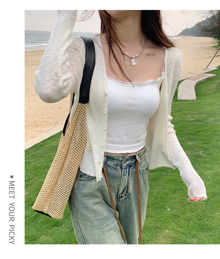 아이스 실크 툴레 목도리 슬링 외부 스트랩 블라우스 썬 스크린 카디건 여성 여름 에어컨 셔츠 웨이스트 코트 짧은 니트 탑