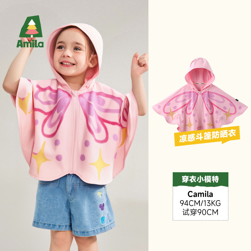 [UPF50] 아동복 2025 여름 새 소녀 태양 보호 의류 귀여운 나비 스타일 코트스토어 가기