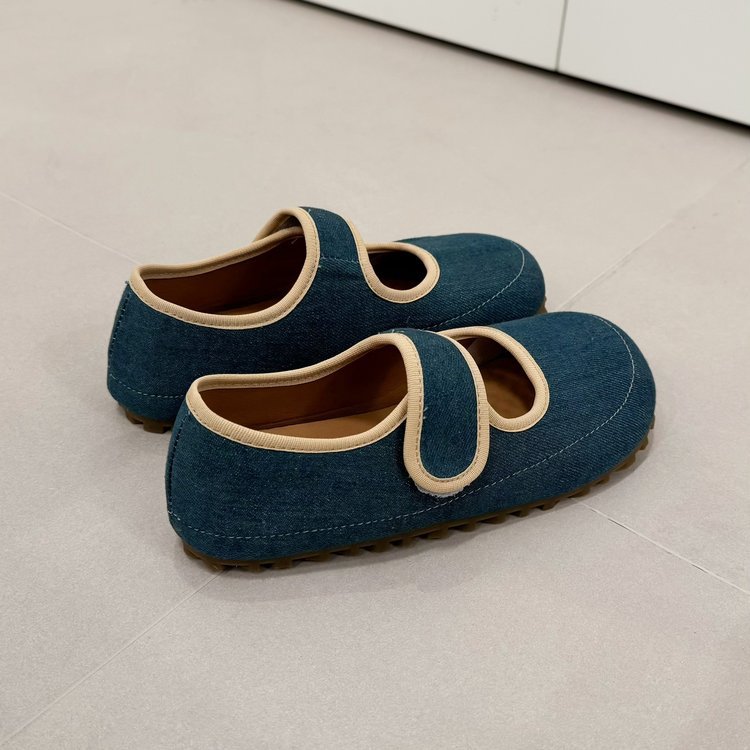 빈티지 라운드 발가락 빵 신발 여성 2025 봄 새로운 플랫 바닥 벨크로 얕은 입 부드러운 바닥 플랫 메리 제인 신발