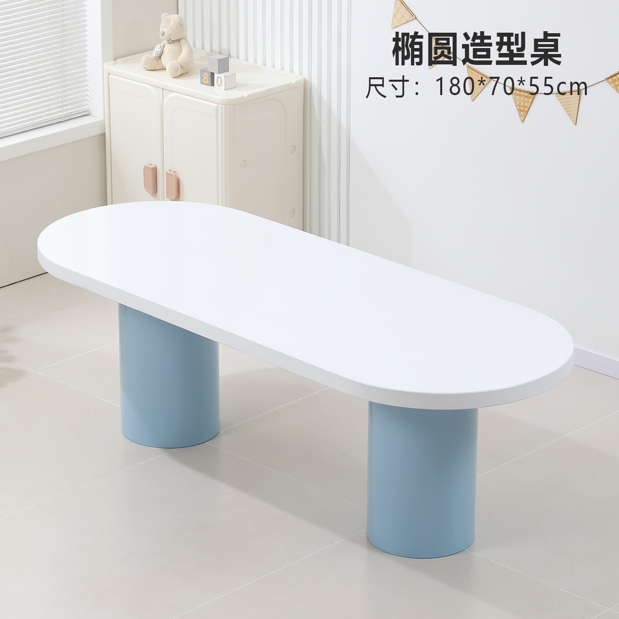 • 하늘색 타원형 테이블