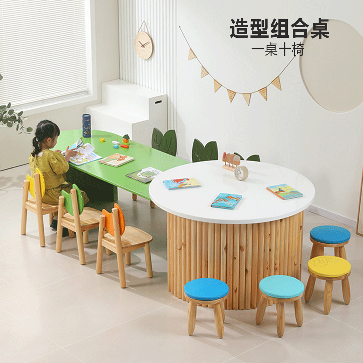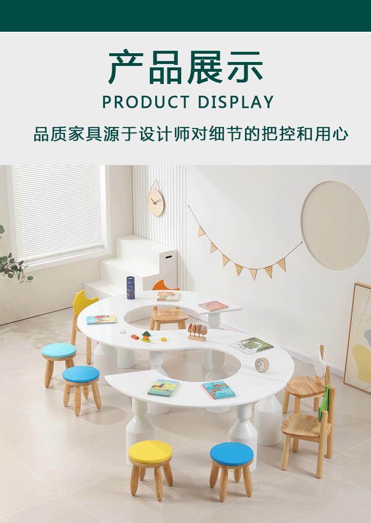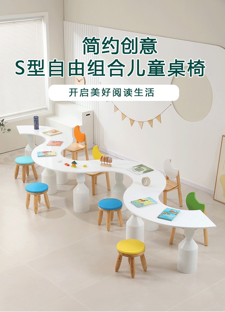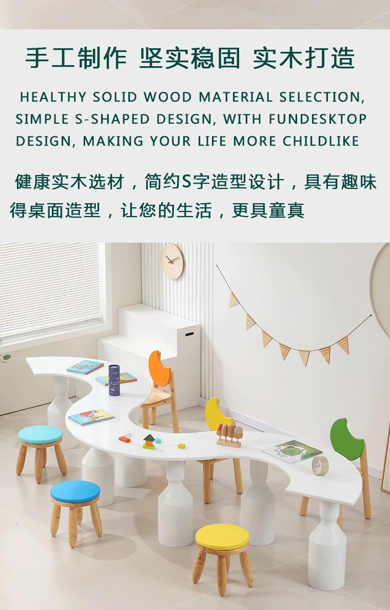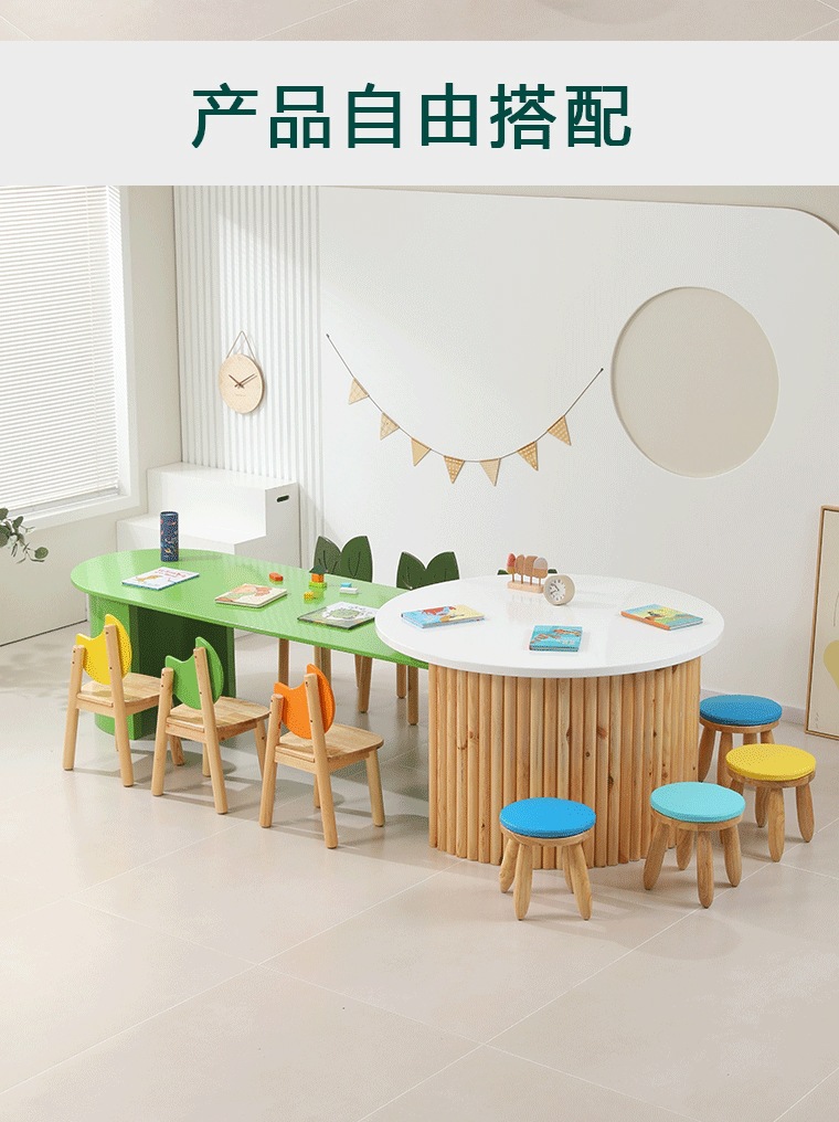 어린이 다인 창의적 조합 테이블 유치원 독서 및 쓰기 테이블 손으로 그린 테이블 조기 교육 도서관 단단한 나무 테이블