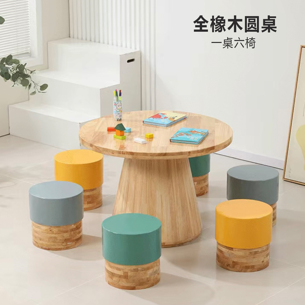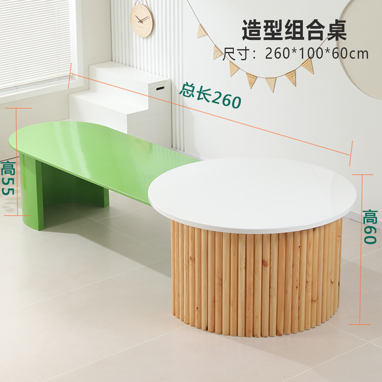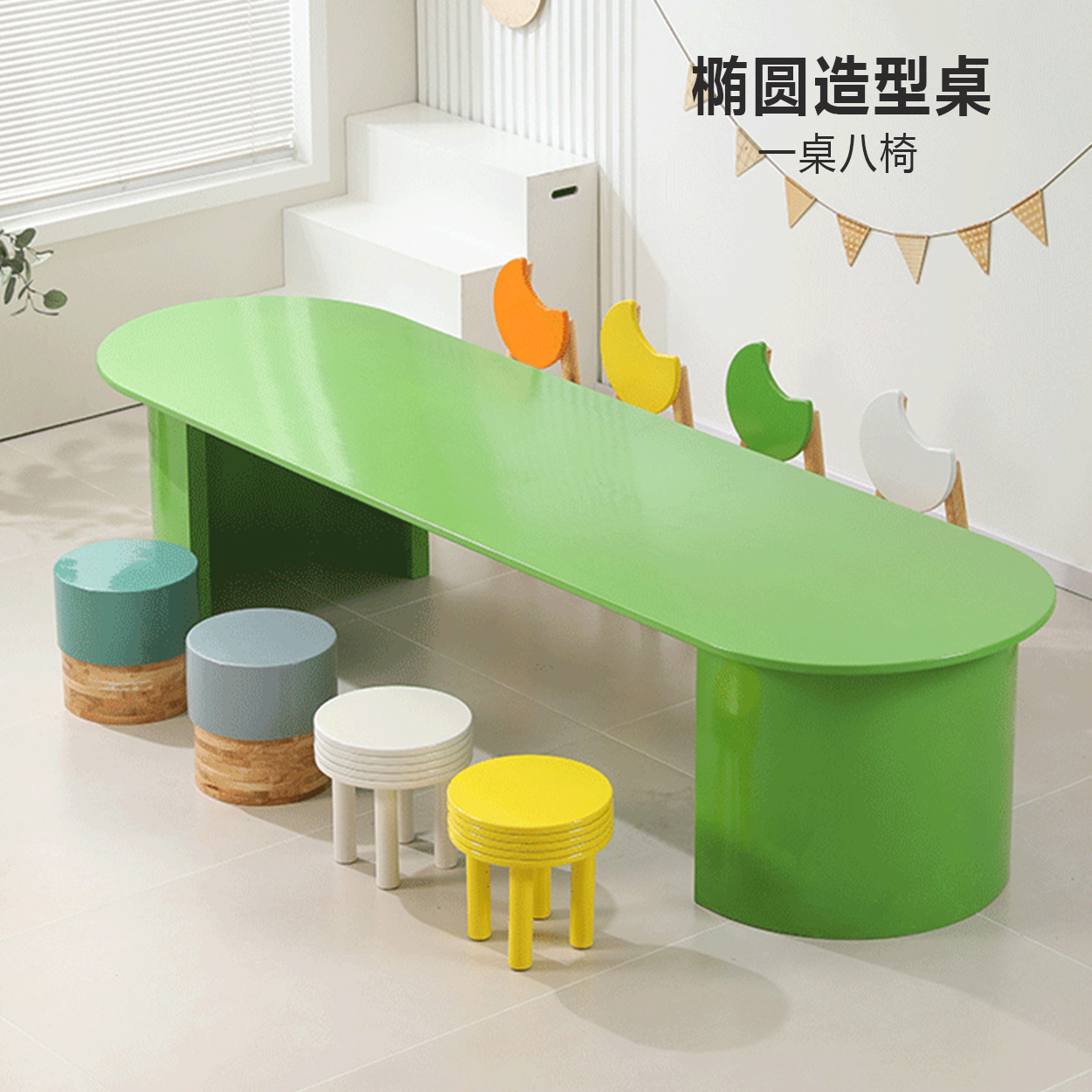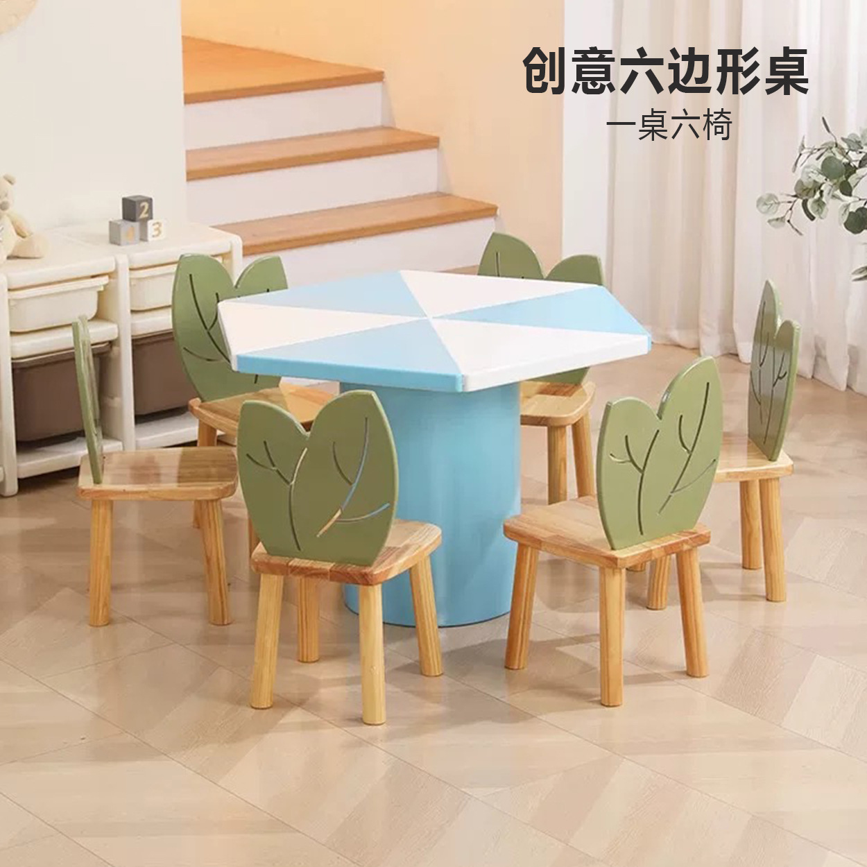 어린이 다인 창의적 조합 테이블 유치원 독서 및 쓰기 테이블 손으로 그린 테이블 조기 교육 도서관 단단한 나무 테이블