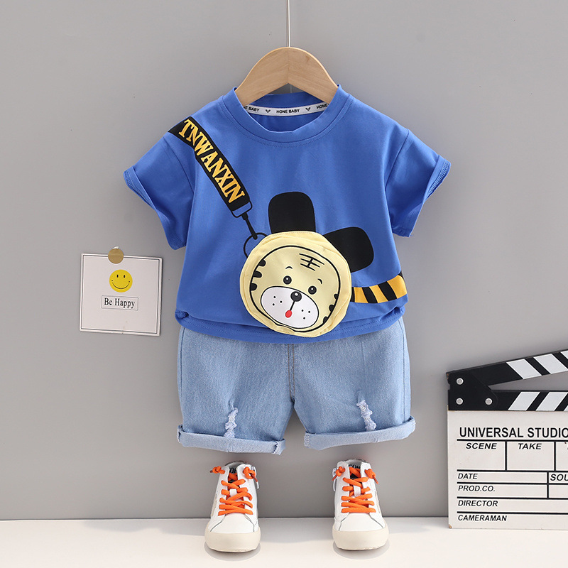 소년 여름 옷 어린이 반팔 양복 새로운 스타일 아기 소년 여름 어린이 셔츠 투피스 세트 유행 1-4 세 3