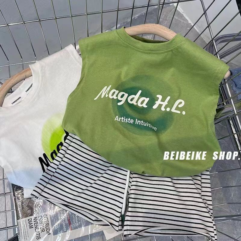 소년 여름 옷 어린이 반팔 양복 새로운 스타일 아기 소년 여름 어린이 셔츠 투피스 세트 유행 1-4 세 3스토어 가기