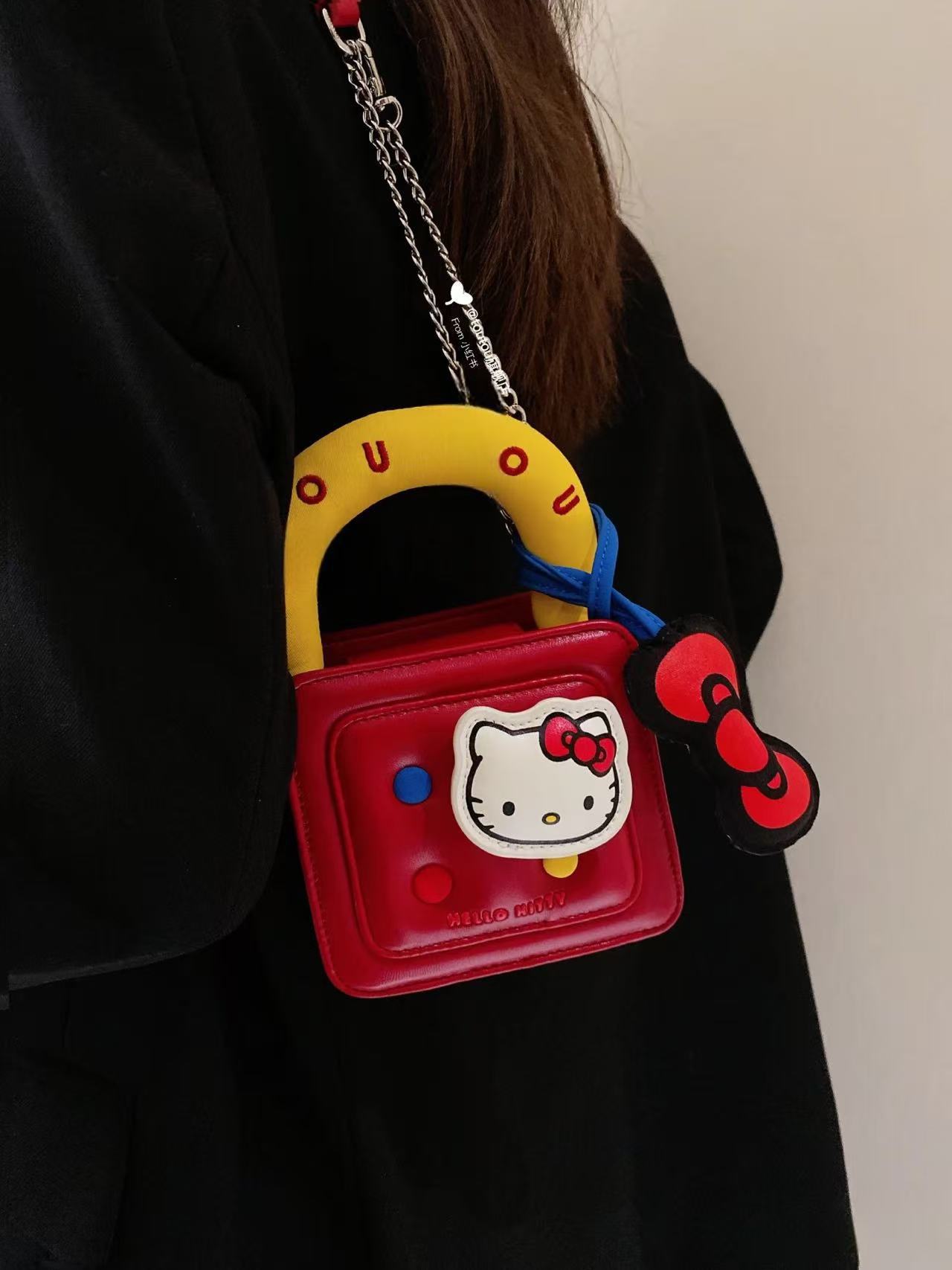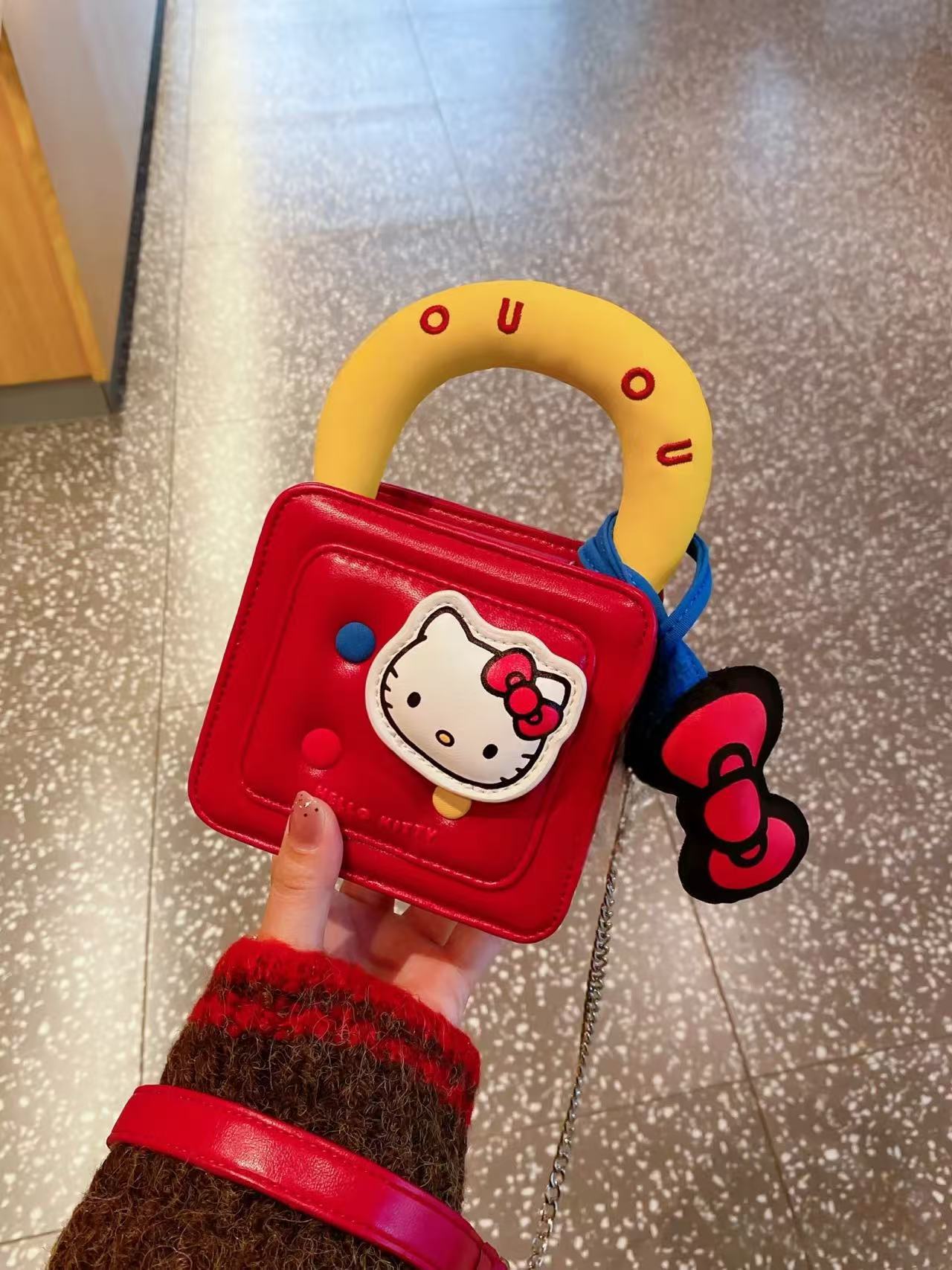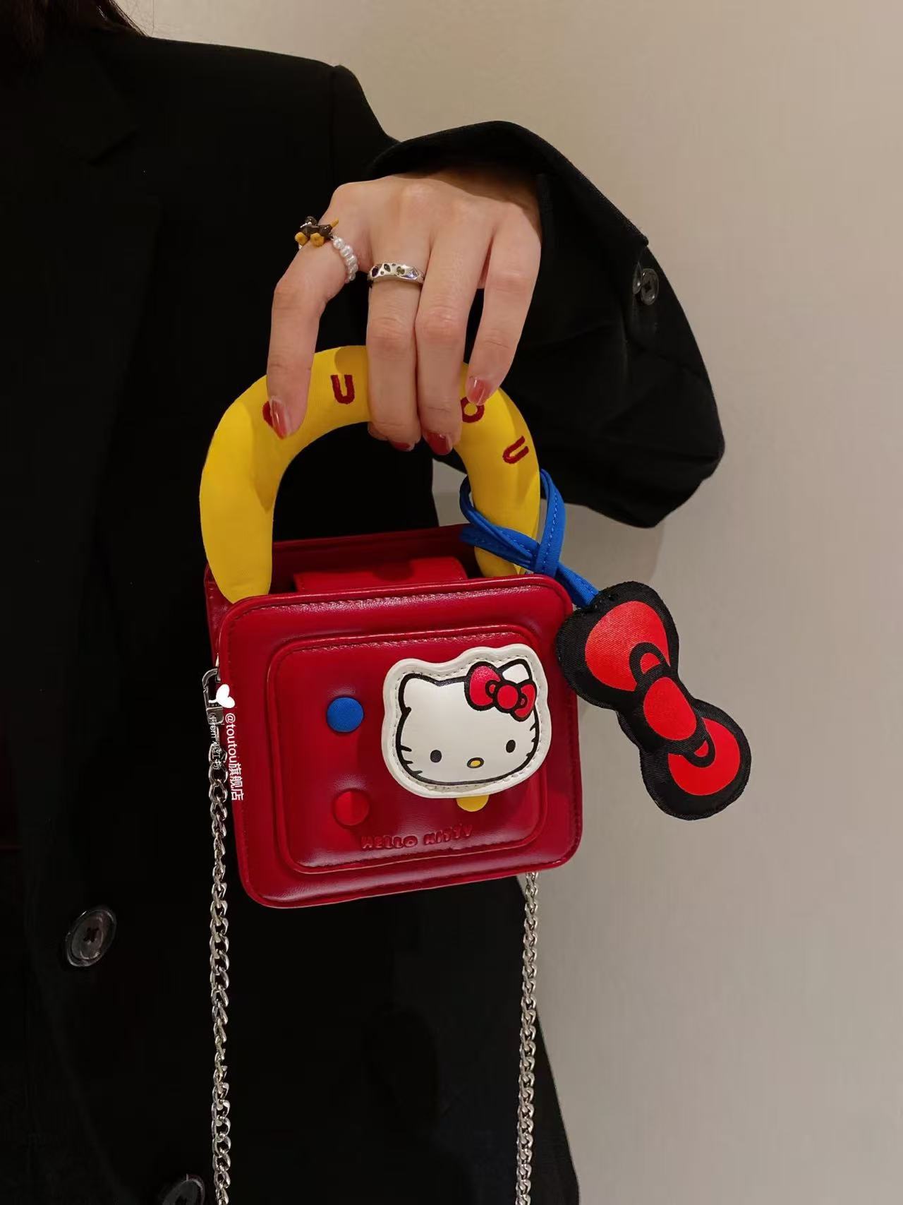귀여운 달콤한 소녀 매일 통근 체인 어깨 가방 모리 Instagram 스타일 만화 빨간 Kt 고양이 크로스 오버 가방