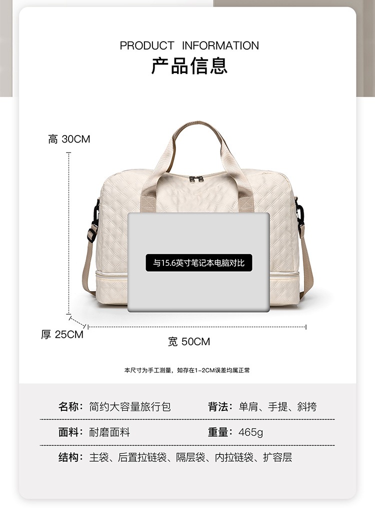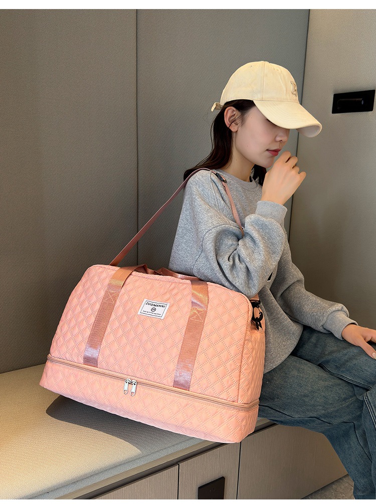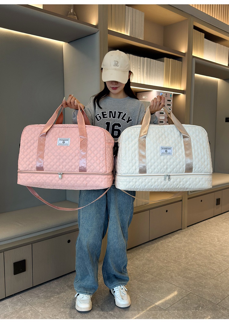 체크 스포츠 피트니스 가방 휴대용 대용량 수하물 가방 신발 빈 건조 및 젖은 별도의 여행 가방