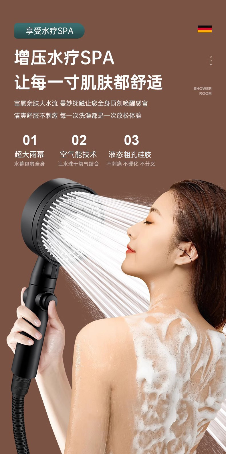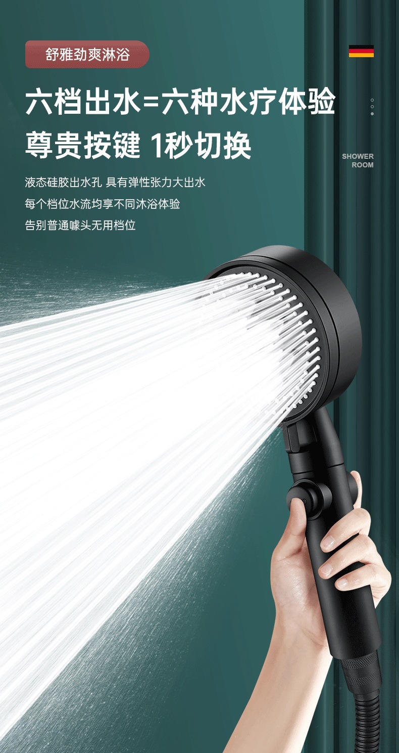 • 블랙 6단 슈퍼차저 샤워헤드(5세대)●업그레이드 및 강화 버전)