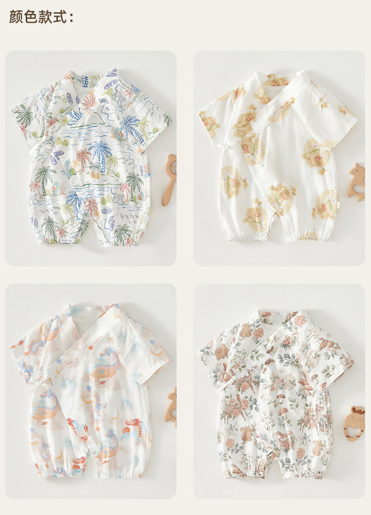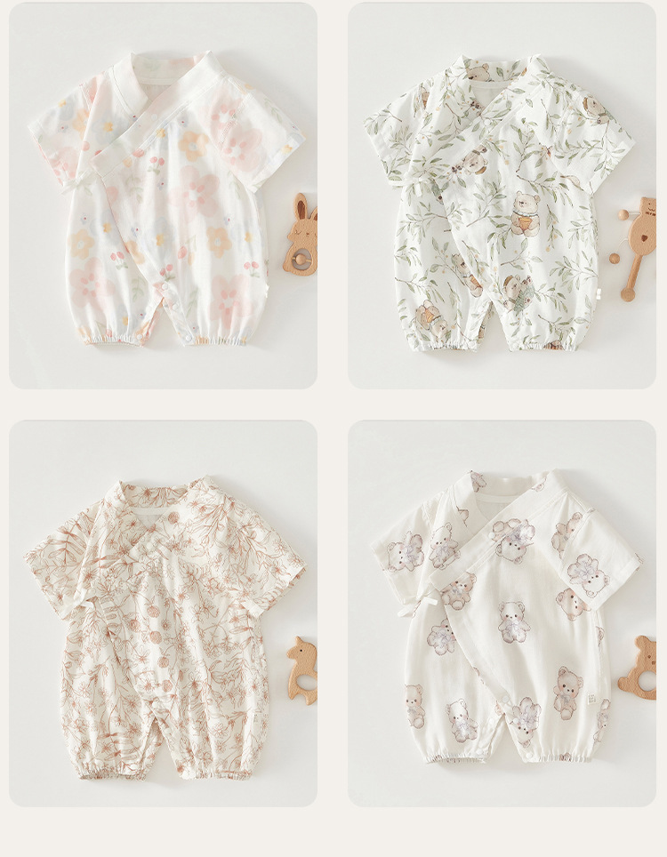 아기 점프 수트 여름 얇은 순면 거즈 반팔 스님 의류 소년 소녀 아기 에어컨 의류 중국 의류 나비 의류스토어 가기