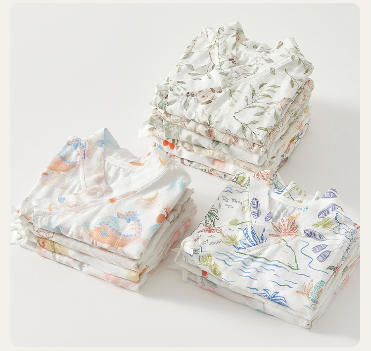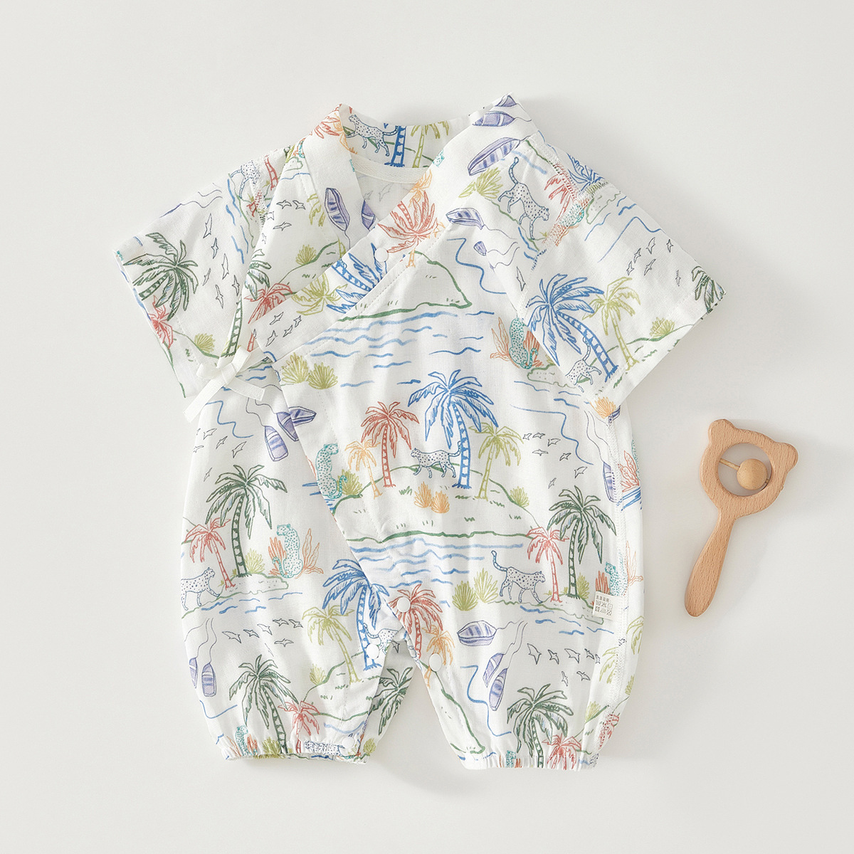 아기 점프 수트 여름 얇은 순면 거즈 반팔 스님 의류 소년 소녀 아기 에어컨 의류 중국 의류 나비 의류