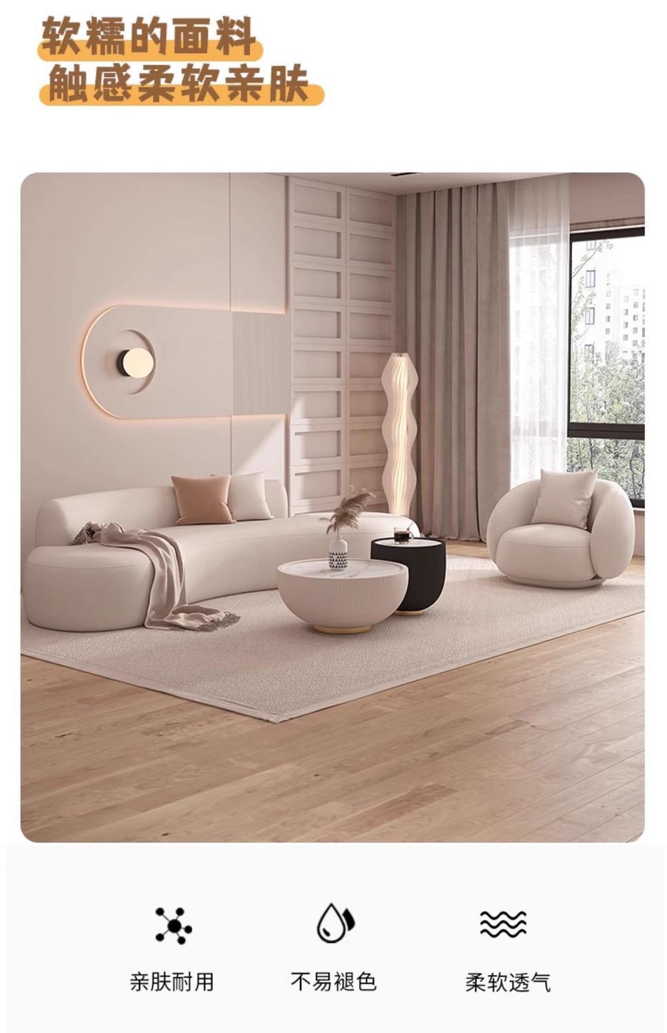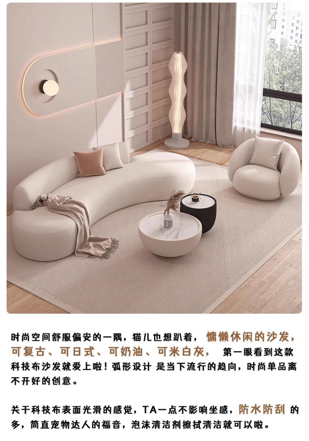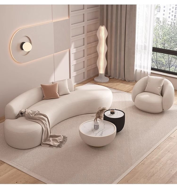 곡선 소파 크림 스타일 뷰티 살롱 곡선 휴식 공간 리셉션 룸 작은 아파트 조합 커피 테이블 가벼운 고급 협상 의자