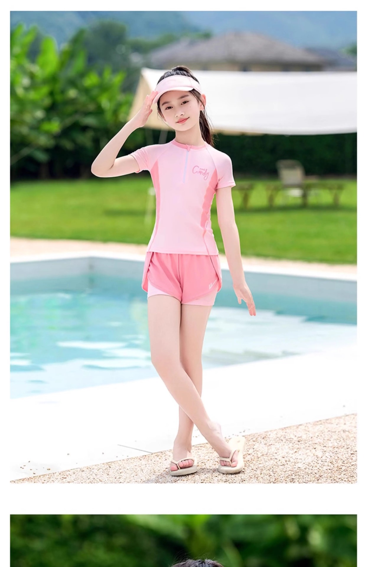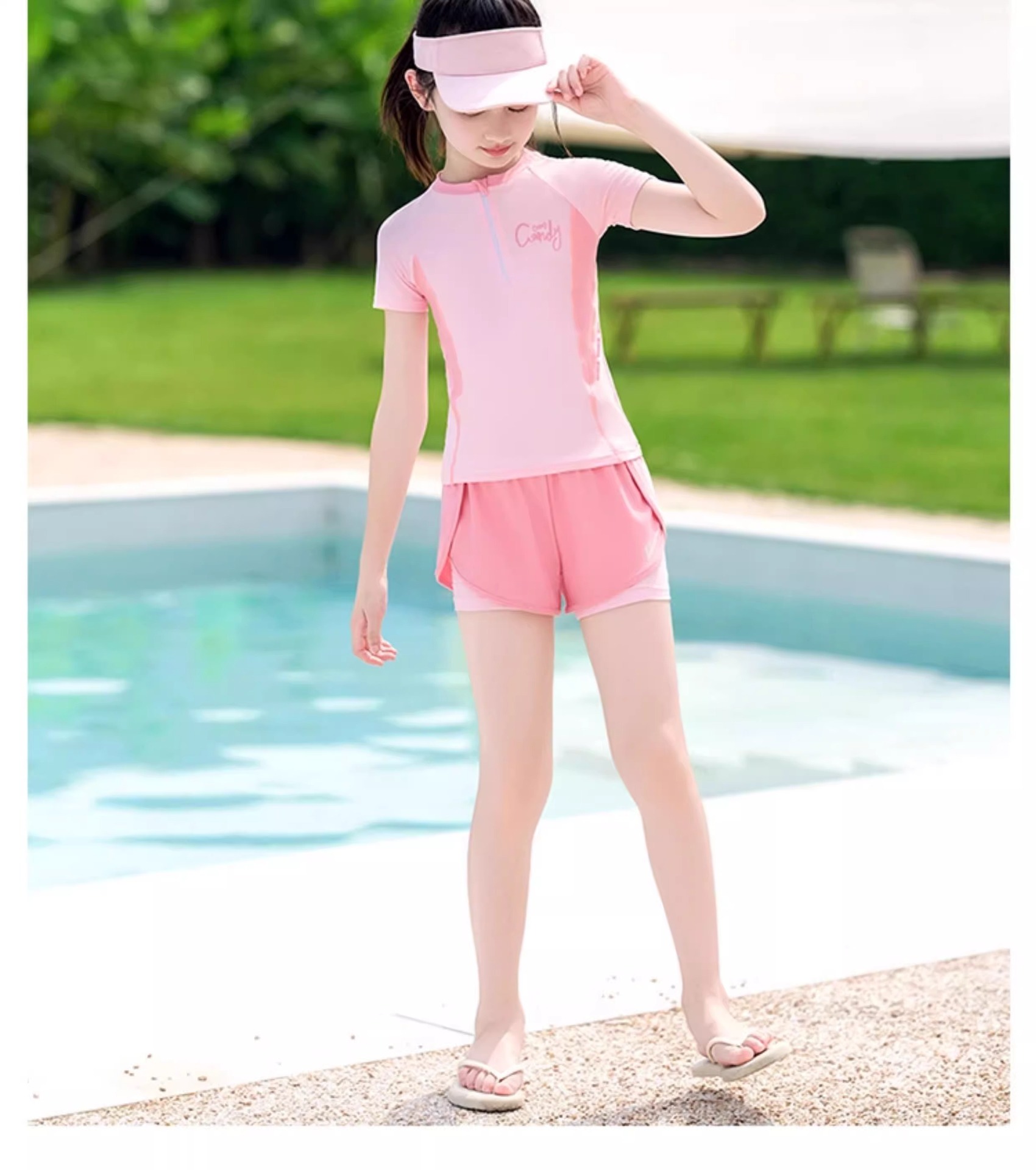 아동 수영복 여아용 2025 신상 여름 중대형 아동 수영복 속건성 보수적인 분리형 수영복 도매