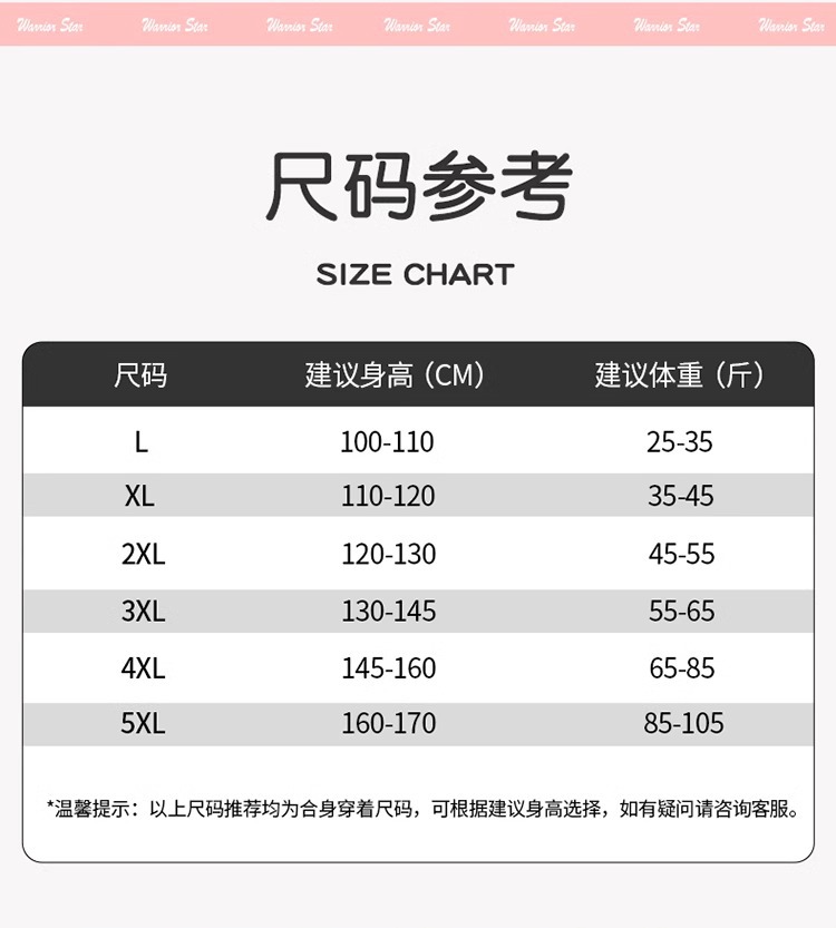 • 3XL (권장 키 130-145cm, 몸무게 27.5-32.5kgcm)