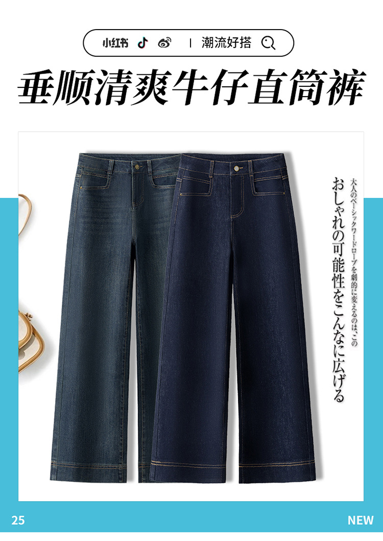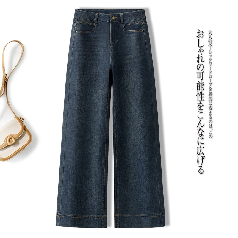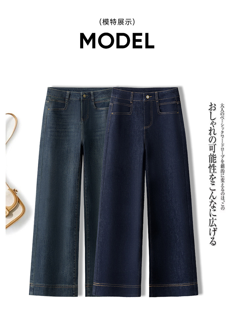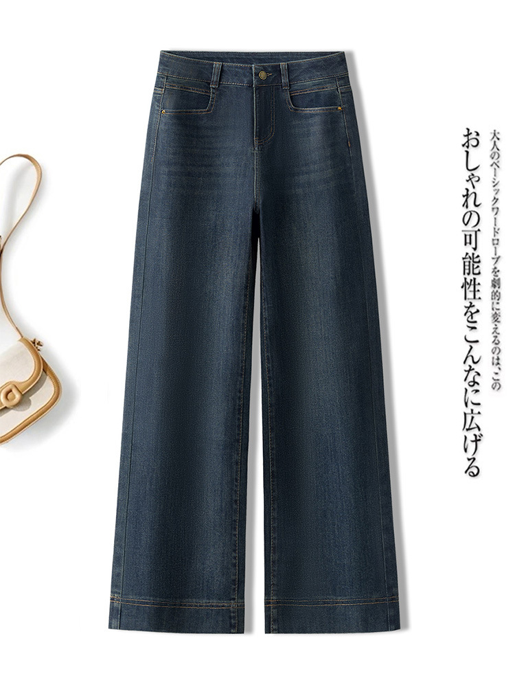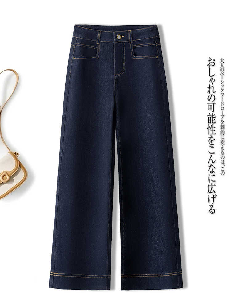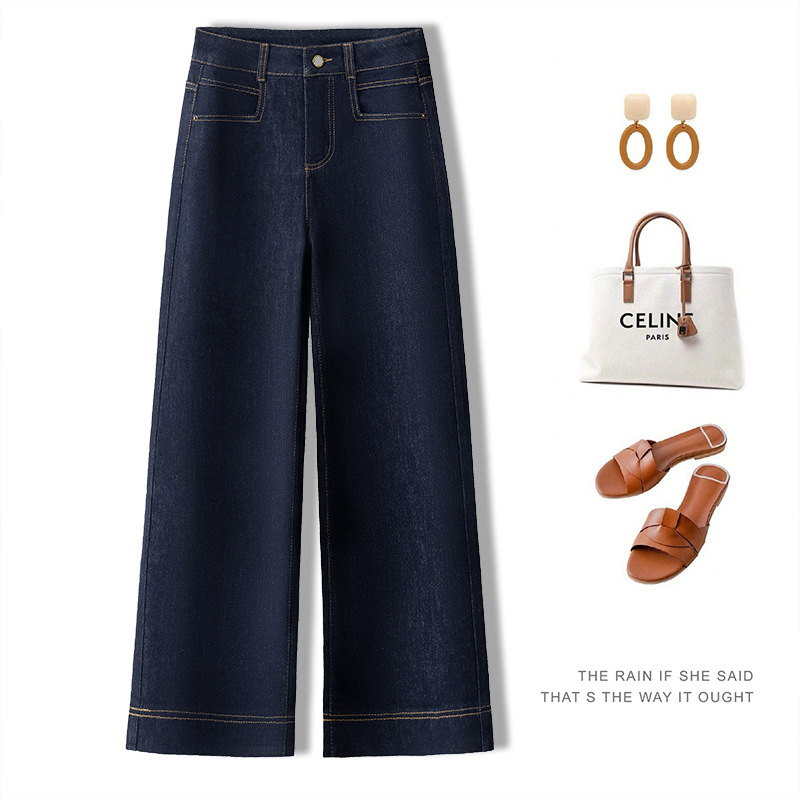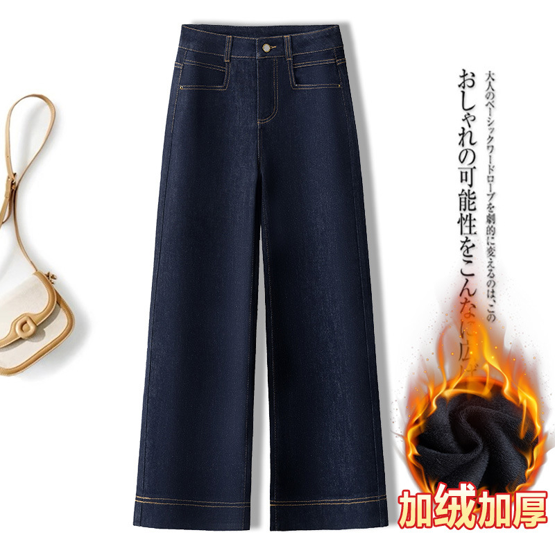 데님 스몰 사이즈 스트레이트 진 여성용 겨울용 기모 안감 두꺼운 하이웨이스트 슬림핏 루즈핏 나인포인트 와이드 팬츠