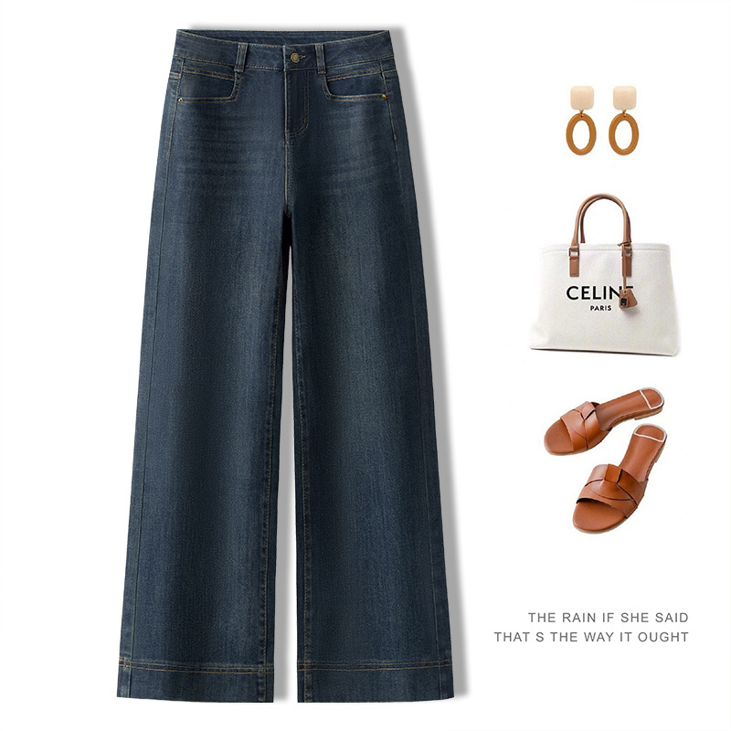 데님 스몰 사이즈 스트레이트 진 여성용 겨울용 기모 안감 두꺼운 하이웨이스트 슬림핏 루즈핏 나인포인트 와이드 팬츠스토어 가기