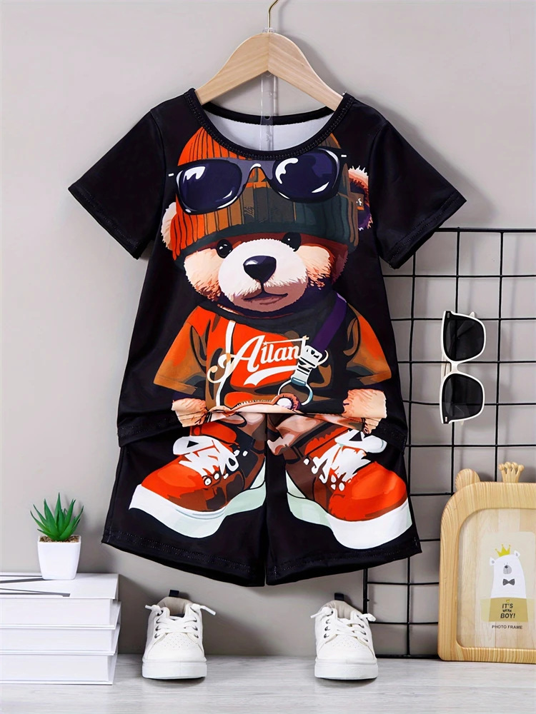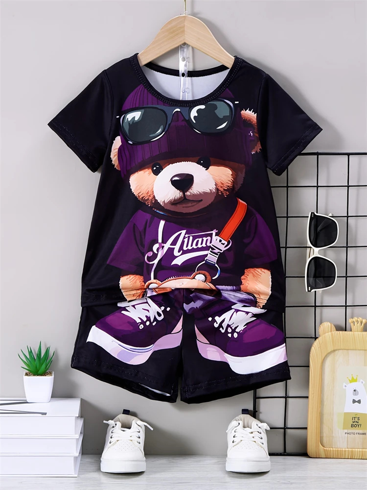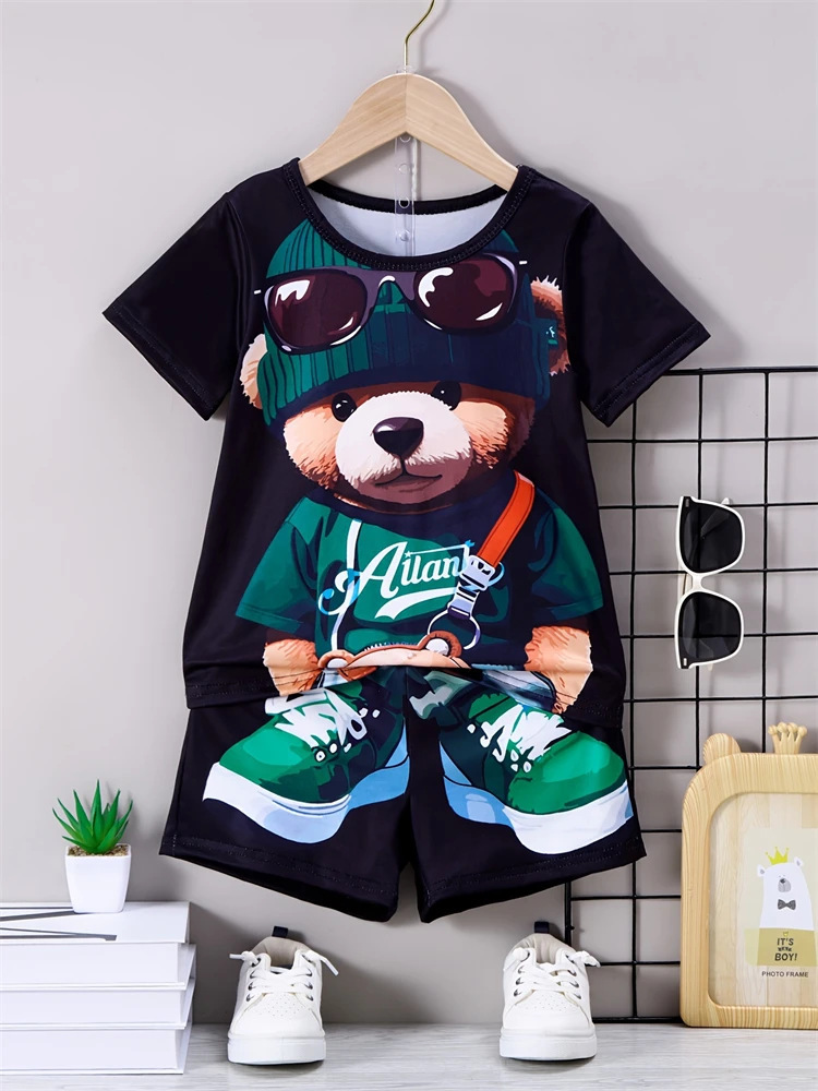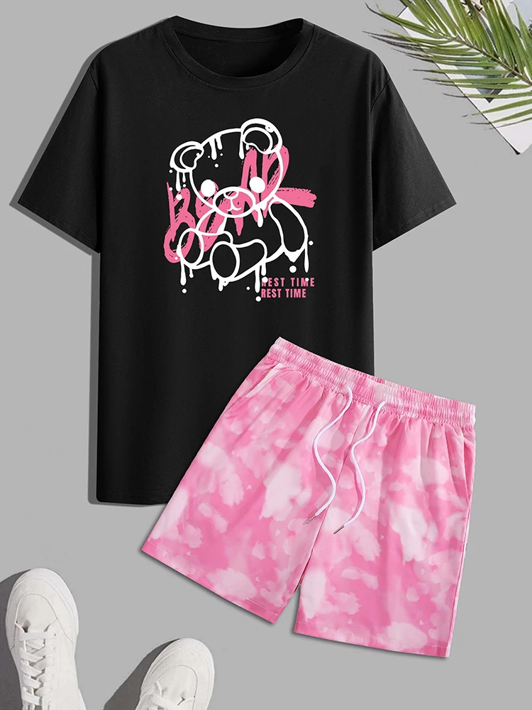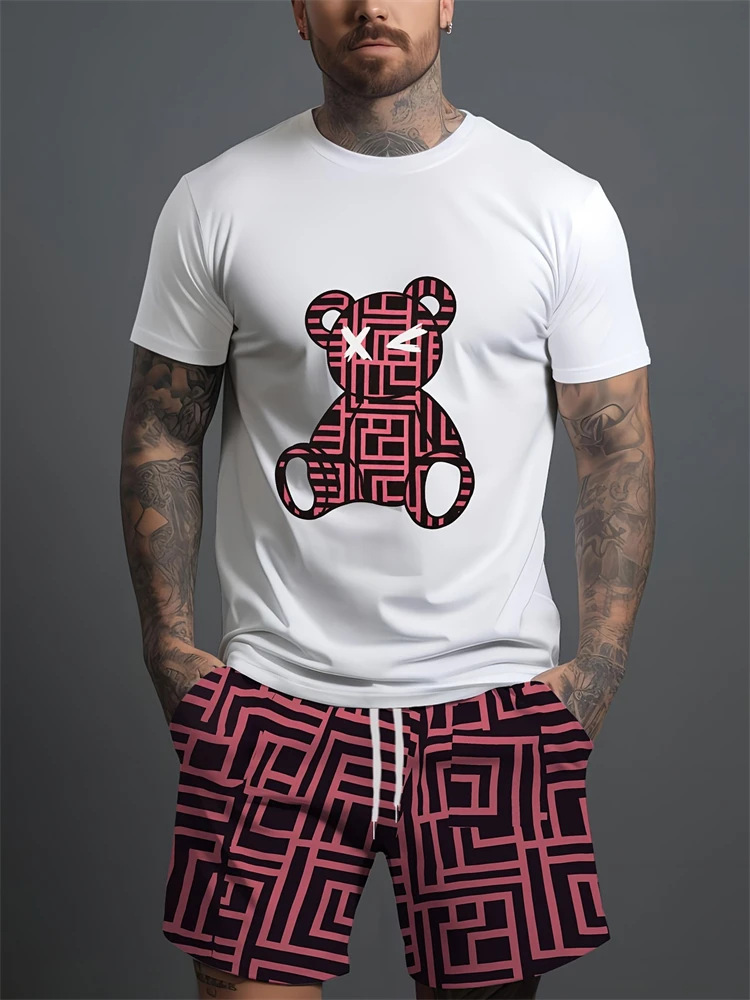국경 간 남자의 3D 곰 인쇄 반팔 티셔츠 세트 스포츠 슈퍼 플러스 사이즈 최고 캐주얼 느슨한 야외 여름 스타일