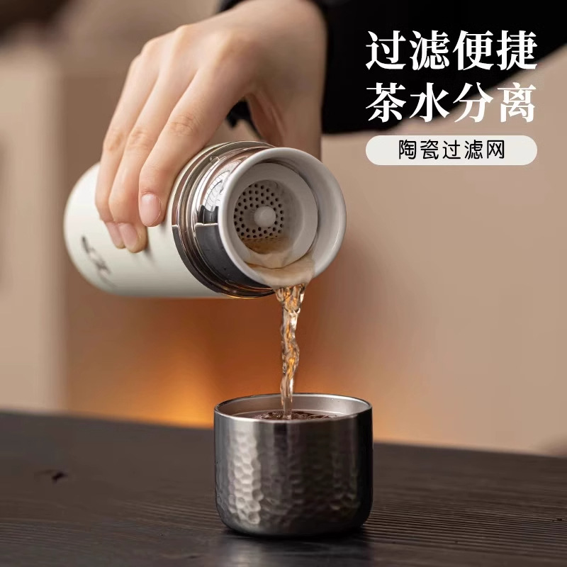 진짜 세라믹 내부 단열컵 무코팅 내산성 및 내알칼리성 차 필터 포함 휴대용 사무실 및 가정용 물컵 라이트 럭셔리