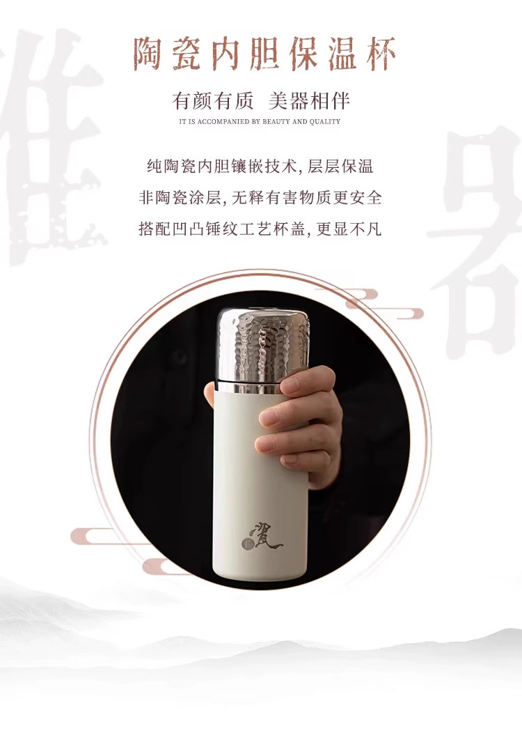 진짜 세라믹 내부 단열컵 무코팅 내산성 및 내알칼리성 차 필터 포함 휴대용 사무실 및 가정용 물컵 라이트 럭셔리스토어 가기