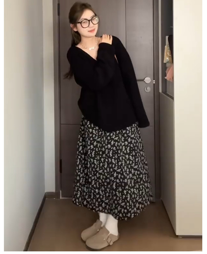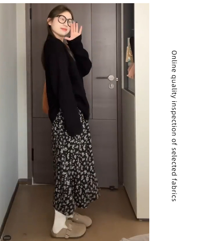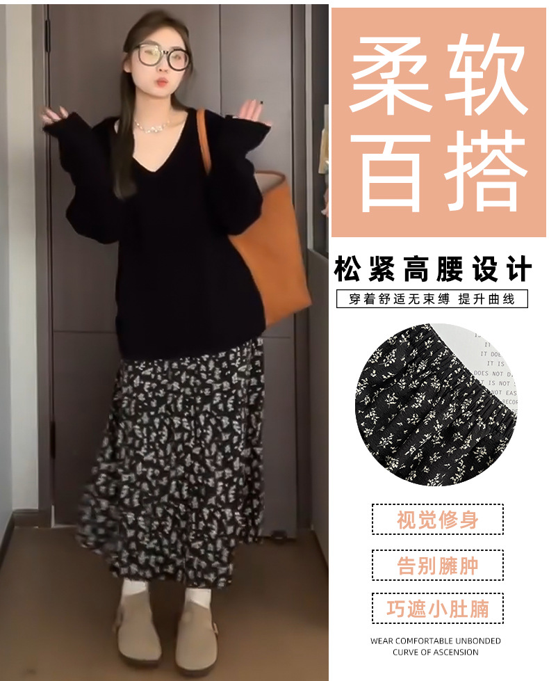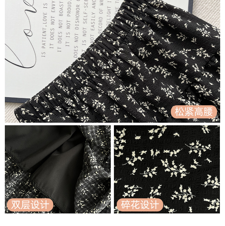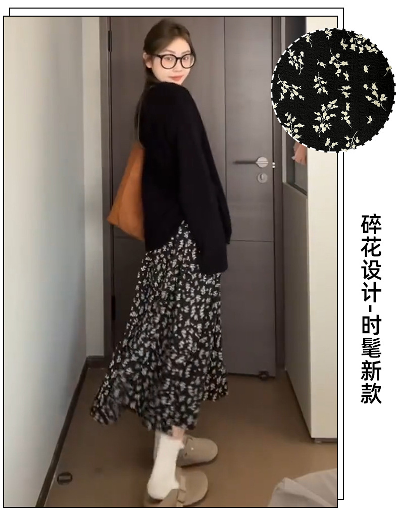검은 꽃 치마 여자 2025 년 여름 새로운 높은 허리 엉덩이 커버 슬림 A 라인 스커트 부드러운 스타일 푹신한 긴 치마