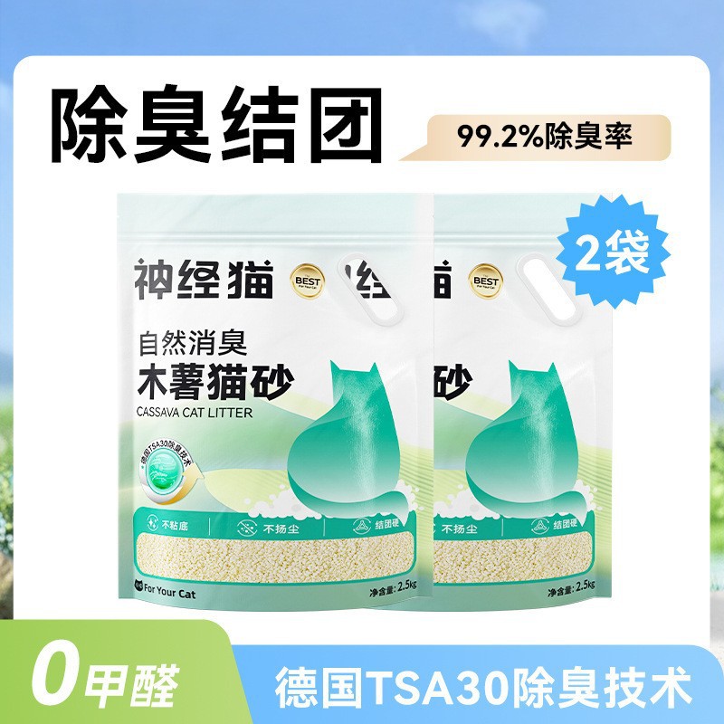 무먼지, 논스틱 바닥, 카이사바 두부 고양이 모래 2.5kg 소다 탈취 혼합형 애완동물 고양이 모래 도매스토어 가기