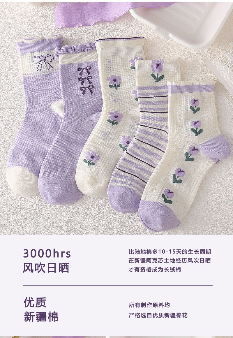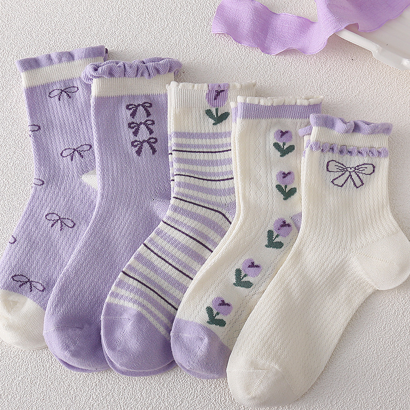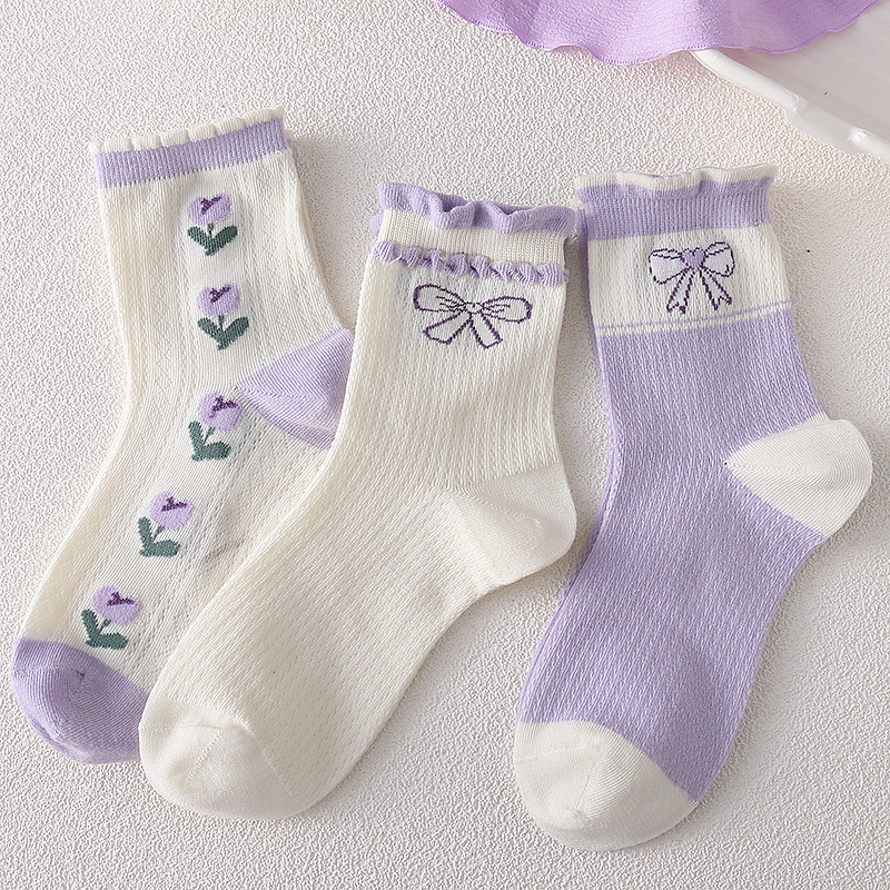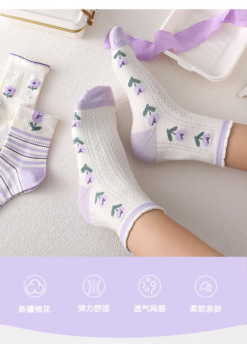 어린이 양말 소녀 봄과 여름 얇은 메쉬 통기성 6-14 세 보라색 소녀의 학생들을위한 신선한 올 매치 미드 튜브 양말스토어 가기