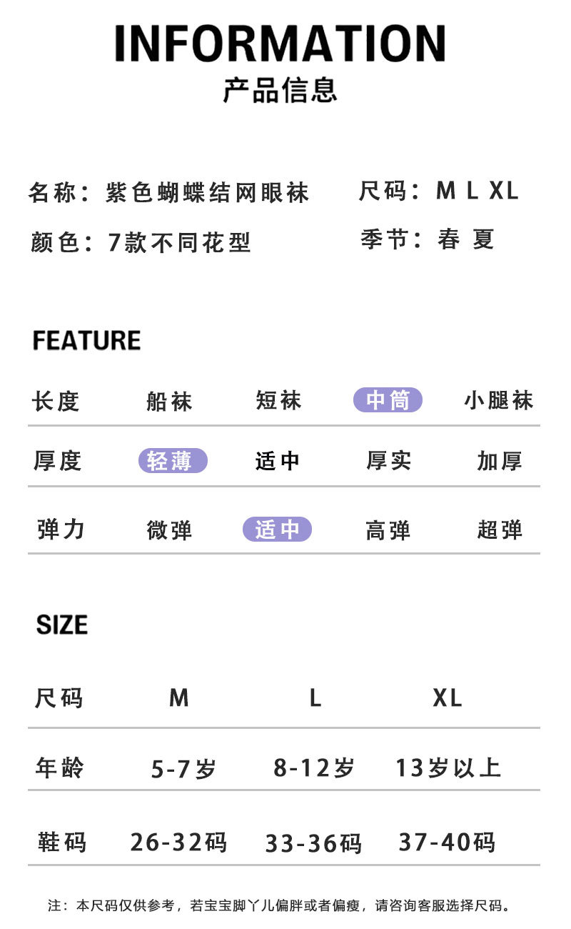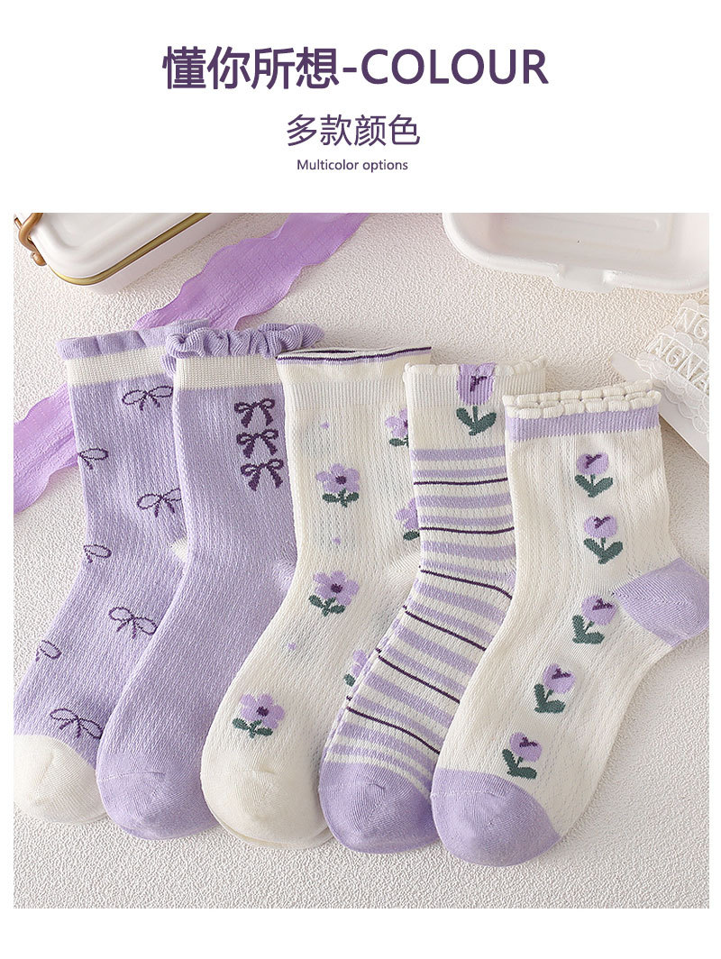 어린이 양말 소녀 봄과 여름 얇은 메쉬 통기성 6-14 세 보라색 소녀의 학생들을위한 신선한 올 매치 미드 튜브 양말
