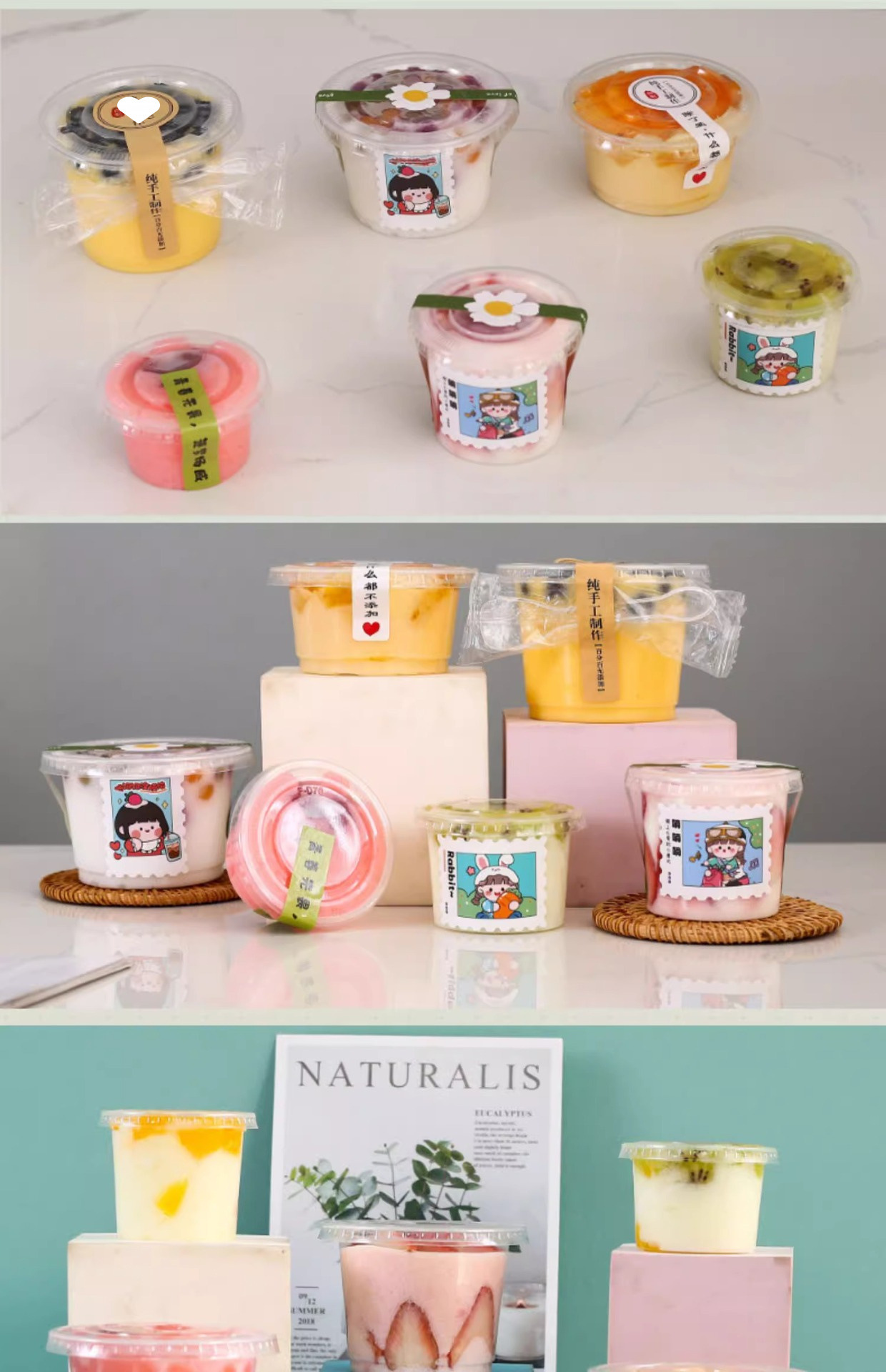 푸딩 컵 일회용 더블 스킨 우유 그릇 젤리 디저트 요구르트 아이스크림 컵 뚜껑 포장 상자 무스