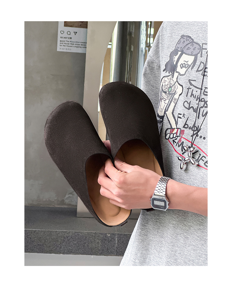 2025 새로운 슬리퍼 Baotou 하프 슬리퍼 여름 겉옷 플랫 캐주얼 복고풍 샌들 봄과 가을 Birkenstock 신발스토어 가기