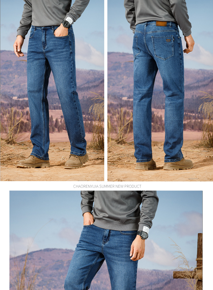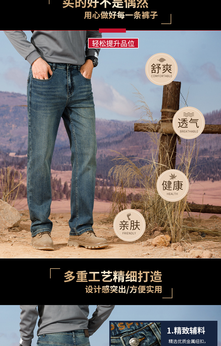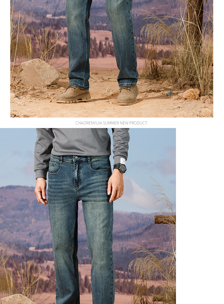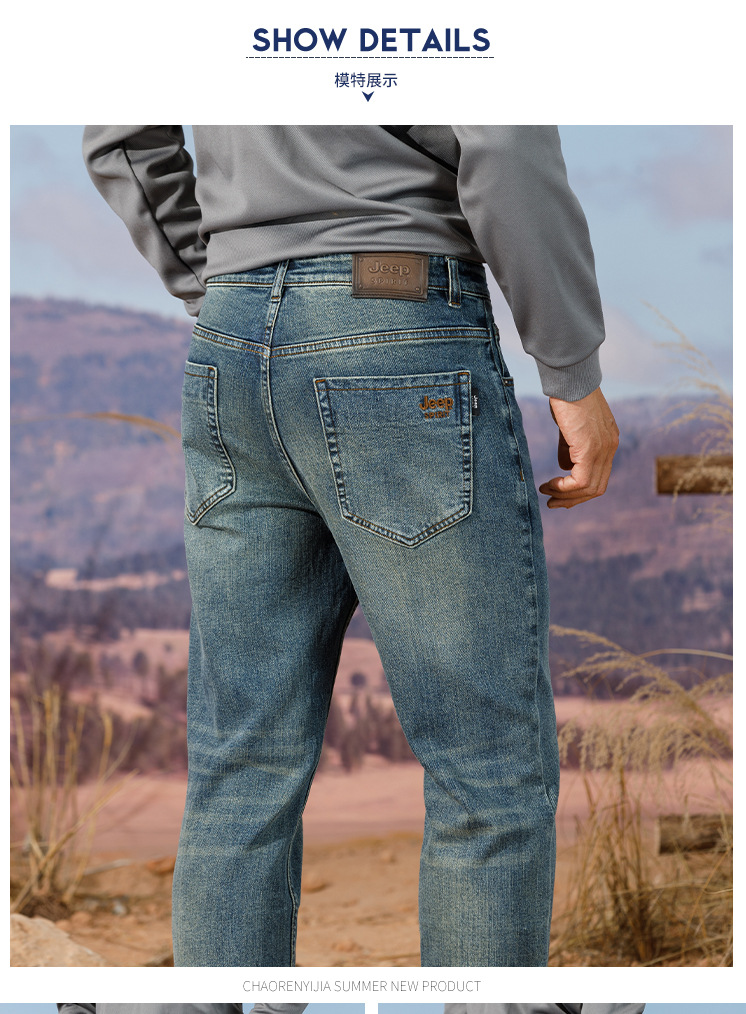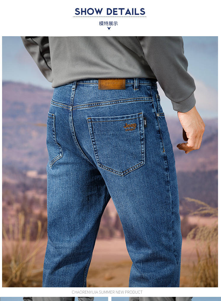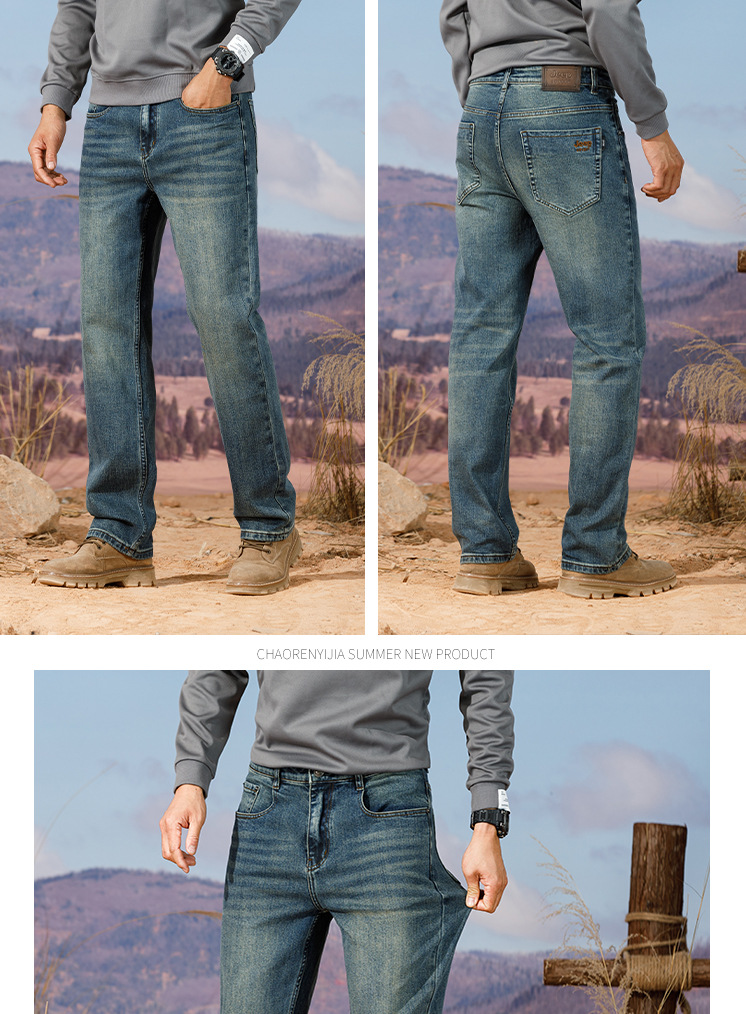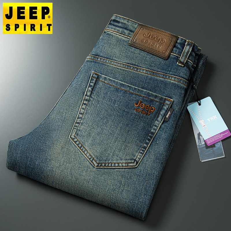 가을, 겨울 신작 남성 향수 란 청바지 레트로 캐주얼 루즈 스트레이트 탄성 중간 허리 자수 두꺼운 J8029