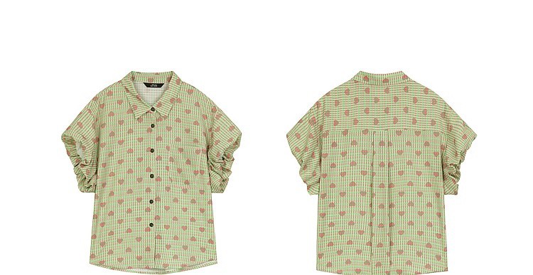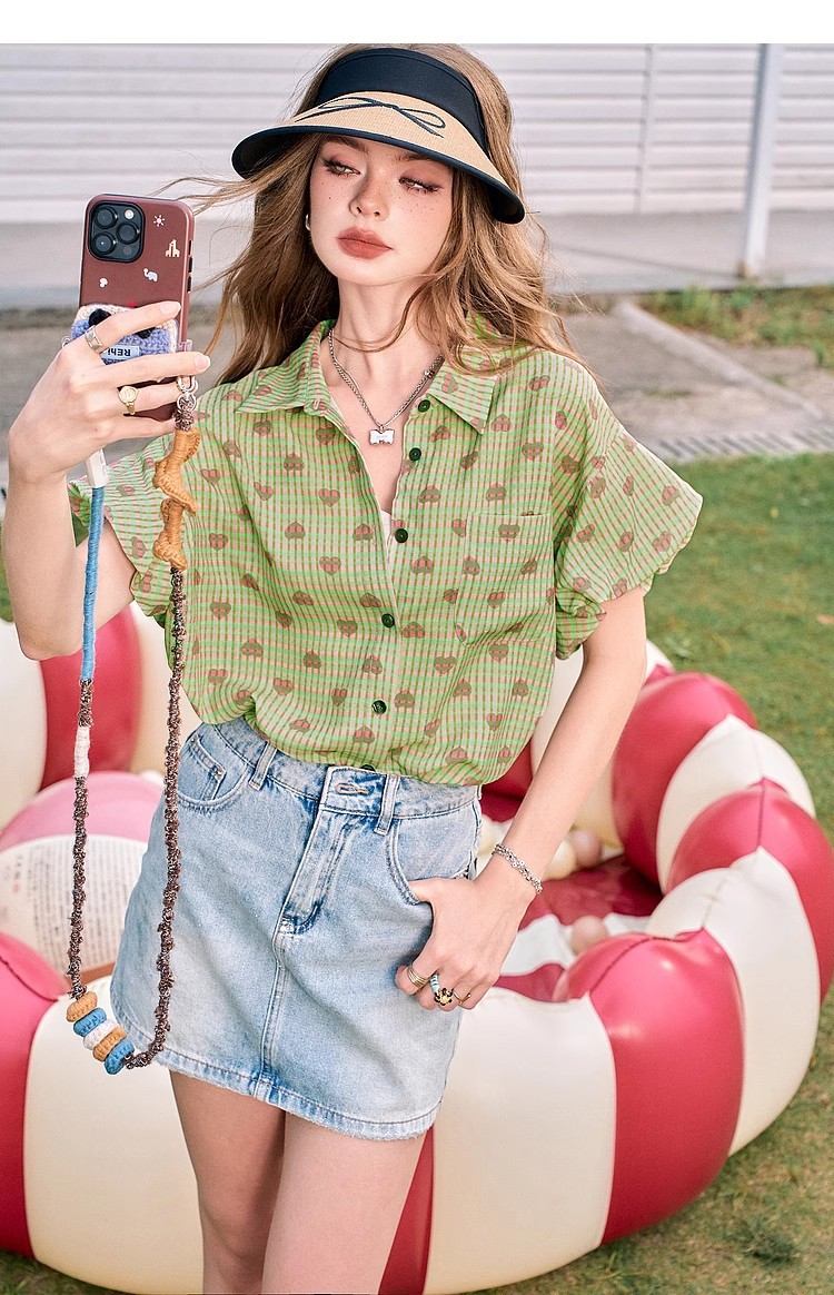 고블린의 주머니 사랑 인쇄 격자 무늬 반팔 셔츠 여성의 2025 년 여름 새로운 도착 꽃 소매 우아한 작은 셔츠