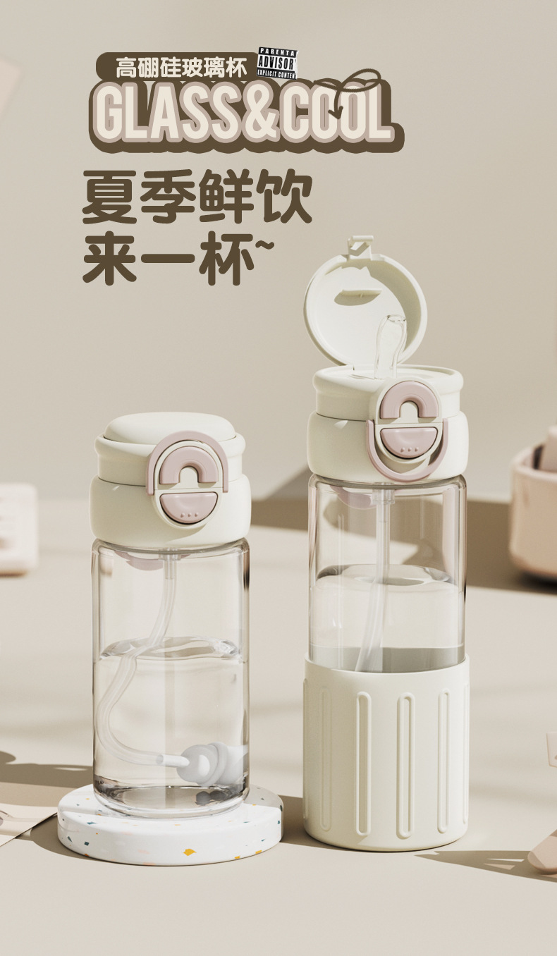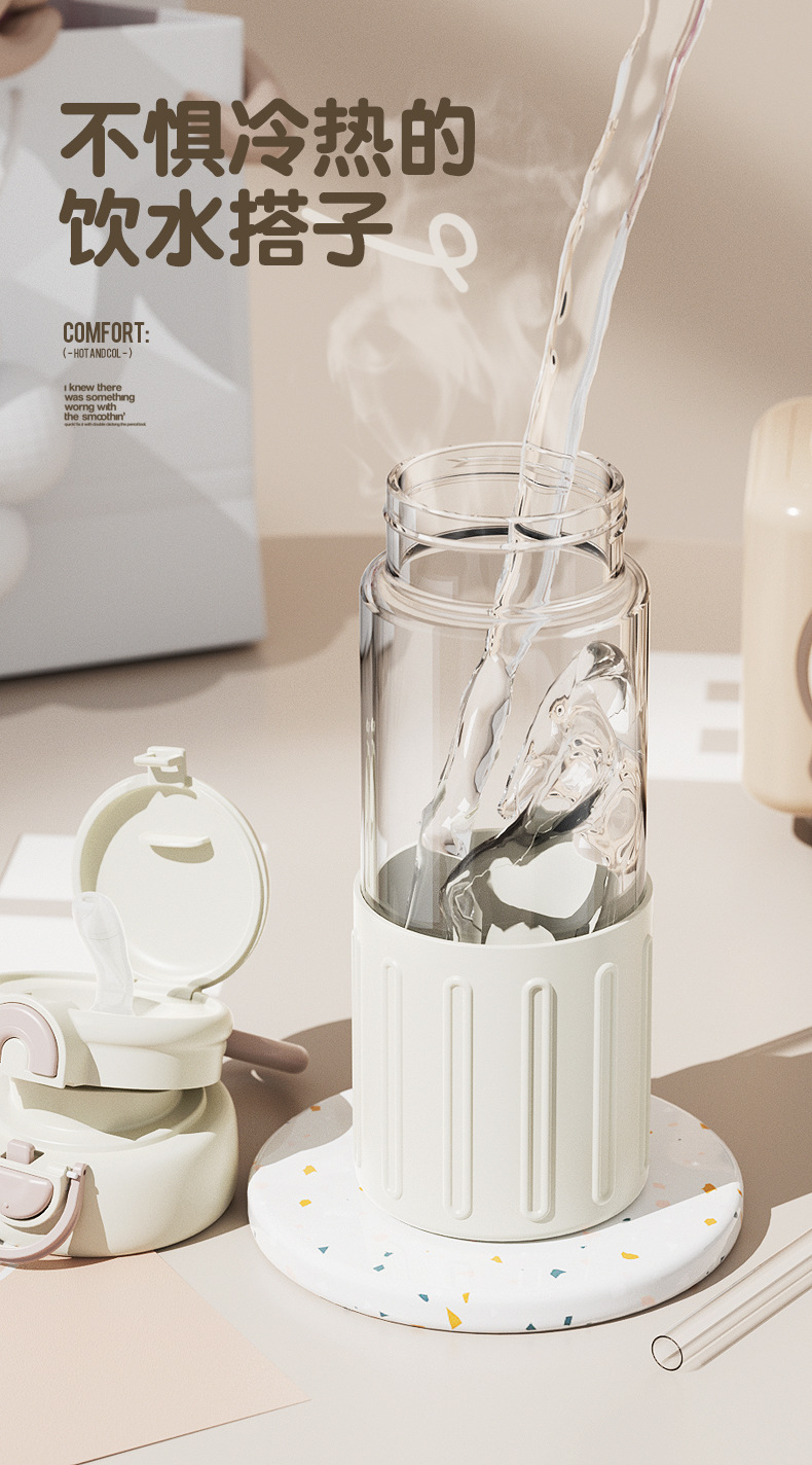 임산부 물컵, 밀짚컵, 산모특수저울, 인터넷 연예인 유리 고급 물컵, 실리콘 커버가 있는 고온 방지스토어 가기