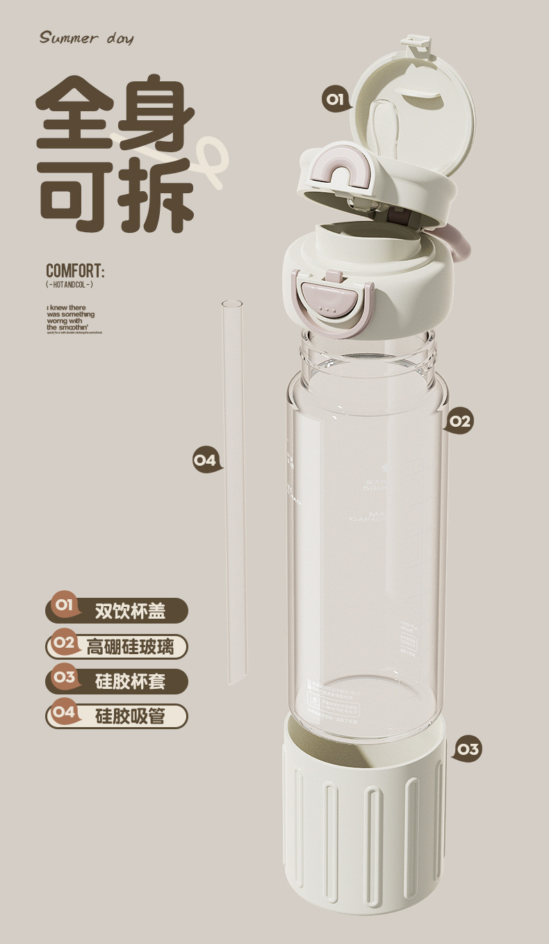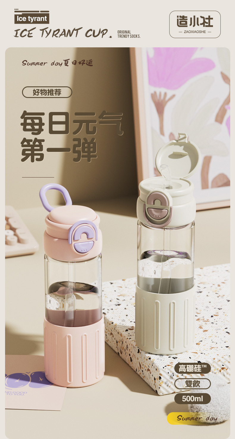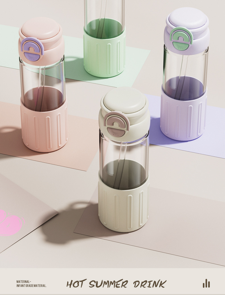 임산부 물컵, 밀짚컵, 산모특수저울, 인터넷 연예인 유리 고급 물컵, 실리콘 커버가 있는 고온 방지