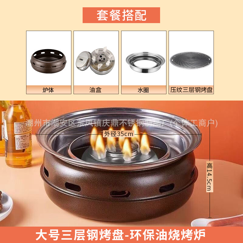 • 친환경 오일 바베큐 그릴 [오일 박스 포함] + 소형 3층 강철 부식 조각 베이킹 팬