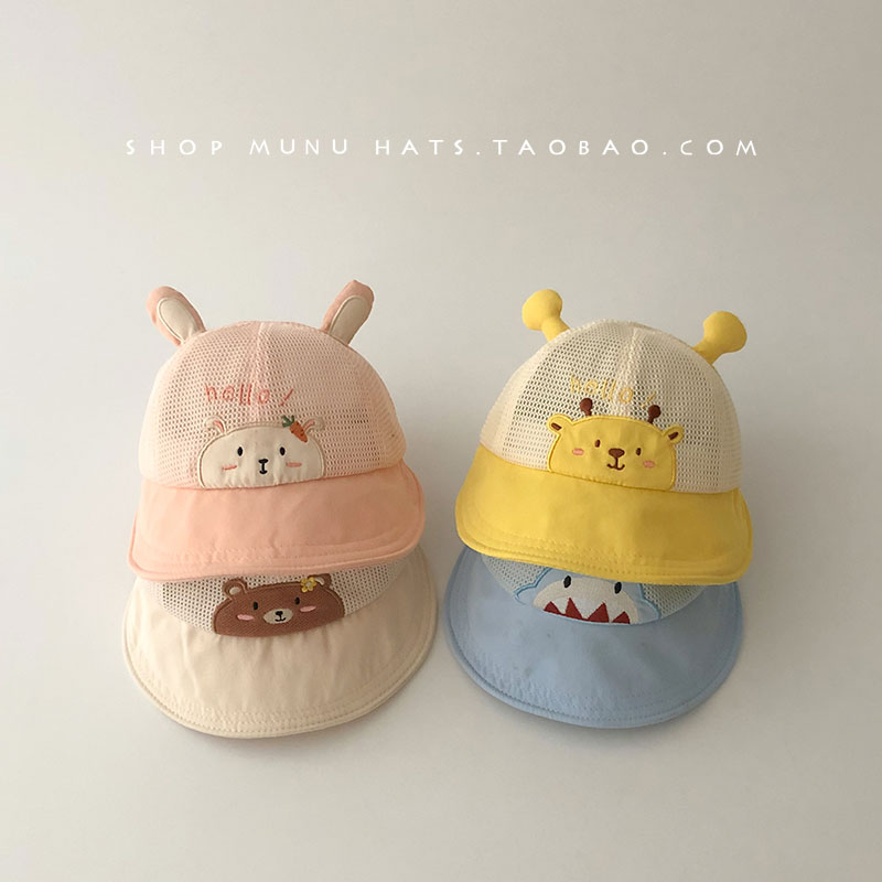 아기의 모자 봄과 여름 메쉬 통기성 얇은 모자 아기의 귀여운 여행 큰 챙이 햇빛 햇살 모자스토어 가기