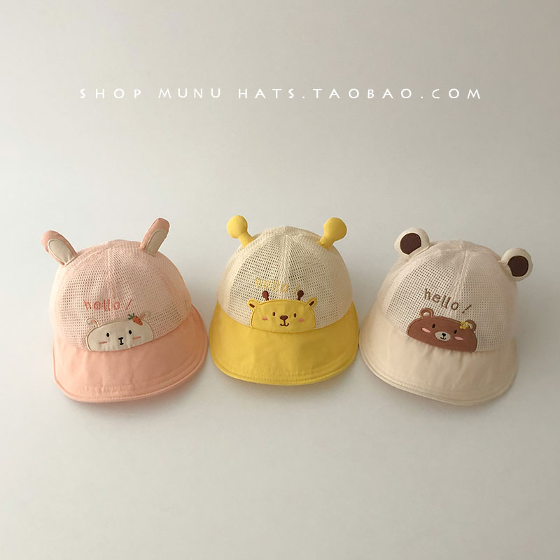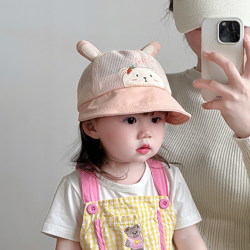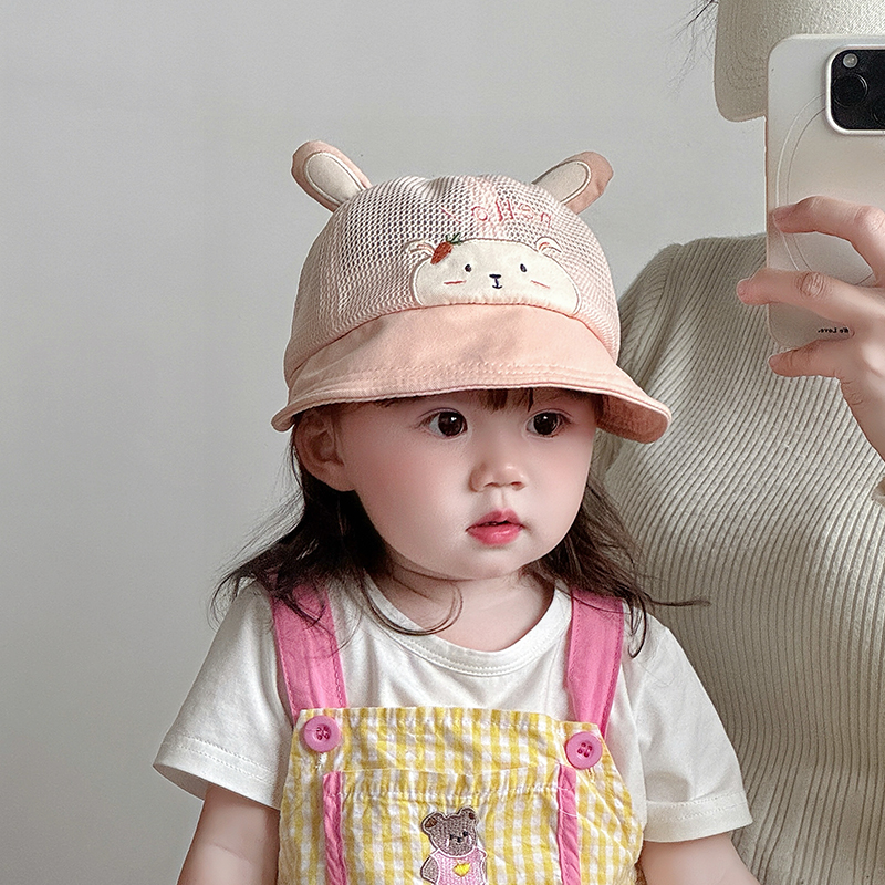 아기의 모자 봄과 여름 메쉬 통기성 얇은 모자 아기의 귀여운 여행 큰 챙이 햇빛 햇살 모자
