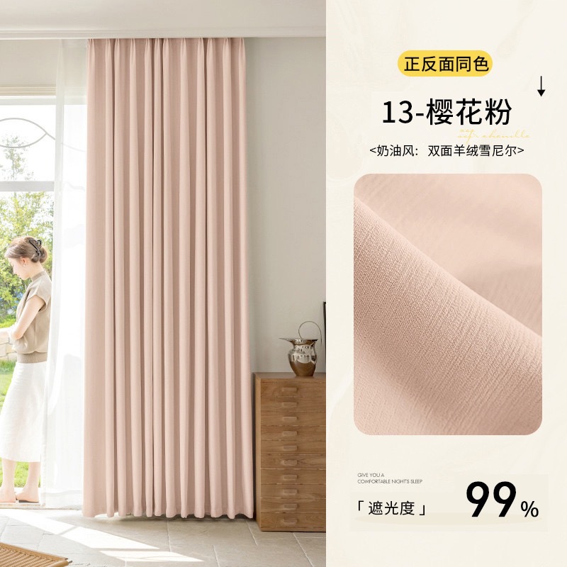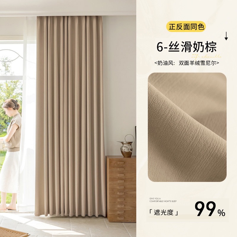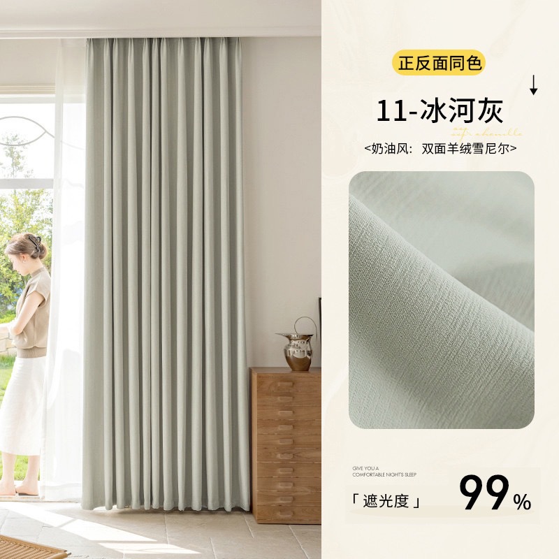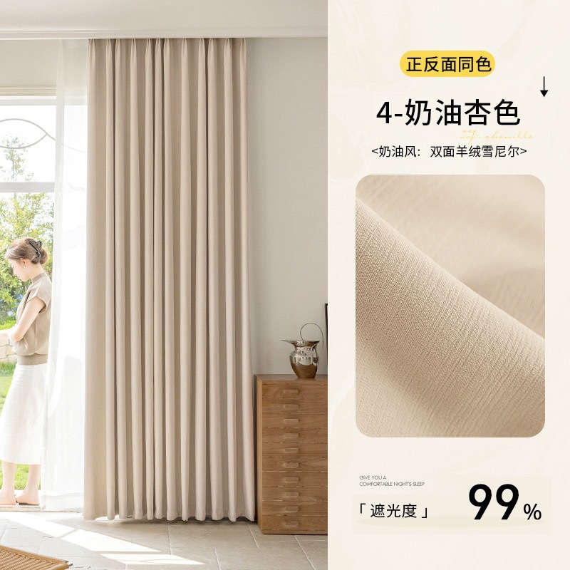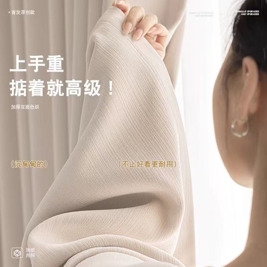 양면 체닐 커튼 풀 쉐이딩 2025 침실 두꺼운 고급 크림 새 스타일 거실 간단한 고온 스테레오 타입