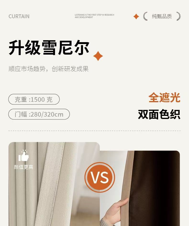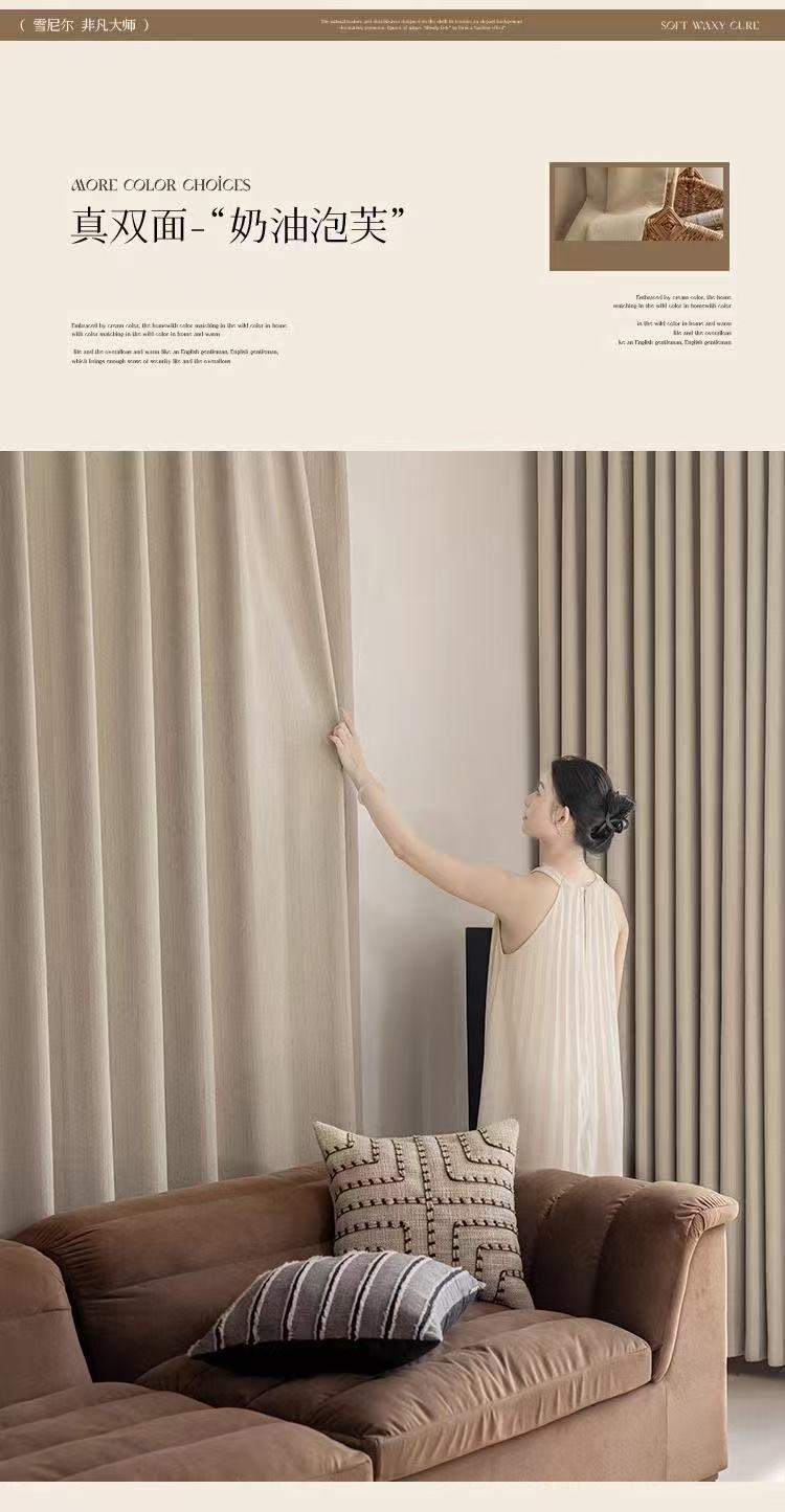 양면 체닐 커튼 풀 쉐이딩 2025 침실 두꺼운 고급 크림 새 스타일 거실 간단한 고온 스테레오 타입스토어 가기