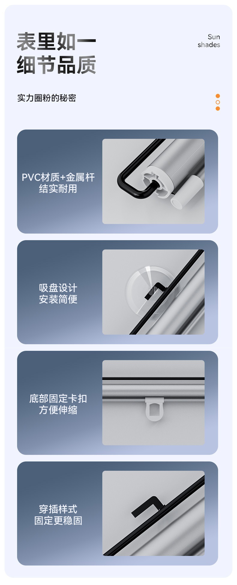 전체 음영 및 차양 롤러 블라인드 발코니 태양 보호 및 단열 커튼 흡입 유형 펀치 프리 텔레스코픽 주방 유리 웨스트 썬