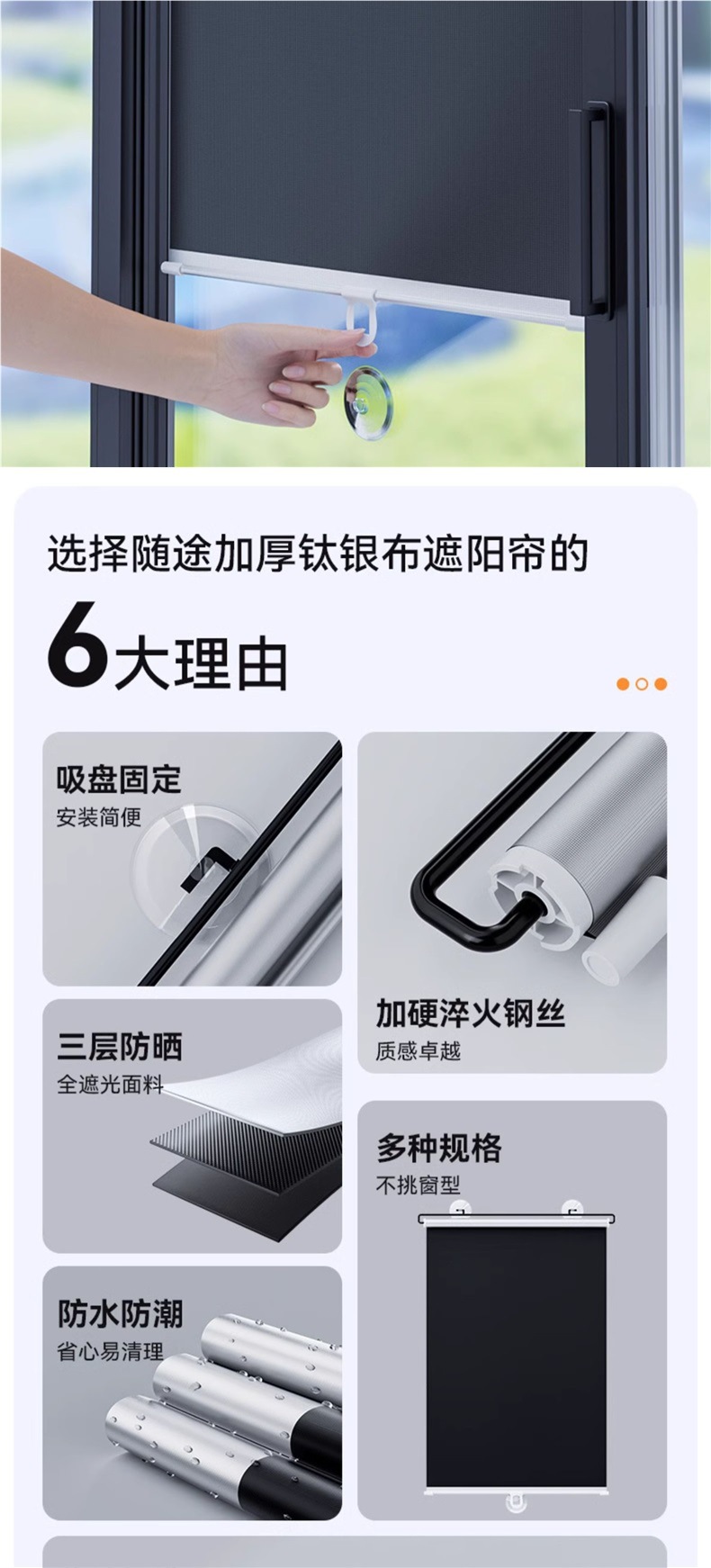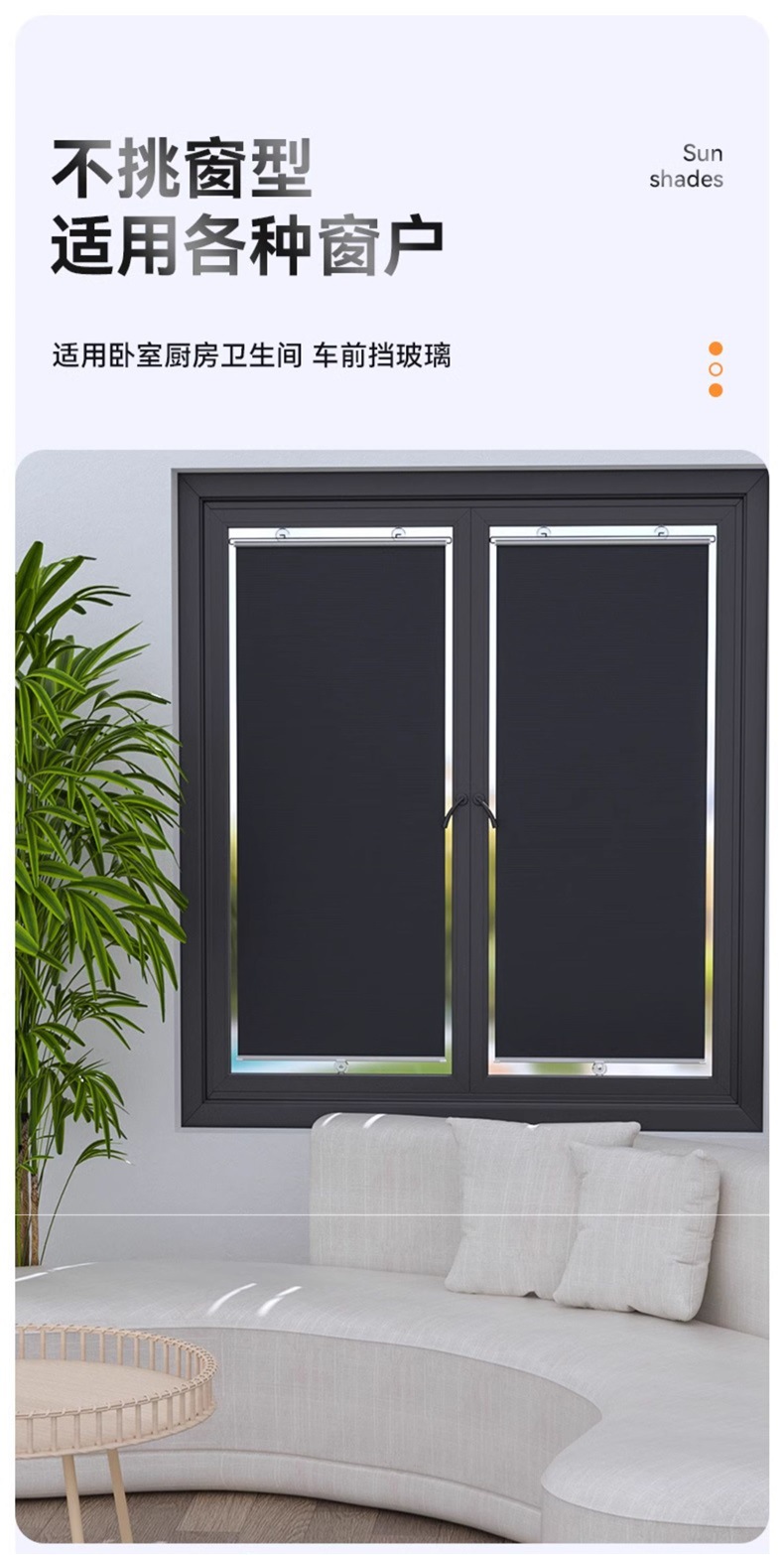 전체 음영 및 차양 롤러 블라인드 발코니 태양 보호 및 단열 커튼 흡입 유형 펀치 프리 텔레스코픽 주방 유리 웨스트 썬스토어 가기