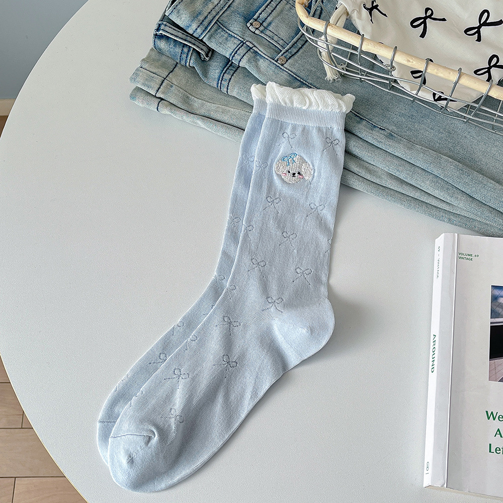 봄과 여름 새로운 발레 스타일 한국 스타일 더미 귀여운 자수 강아지 얇은 면화 빈 활 중간 양말스토어 가기
