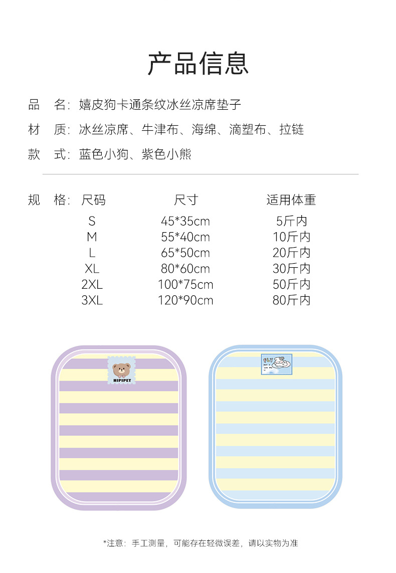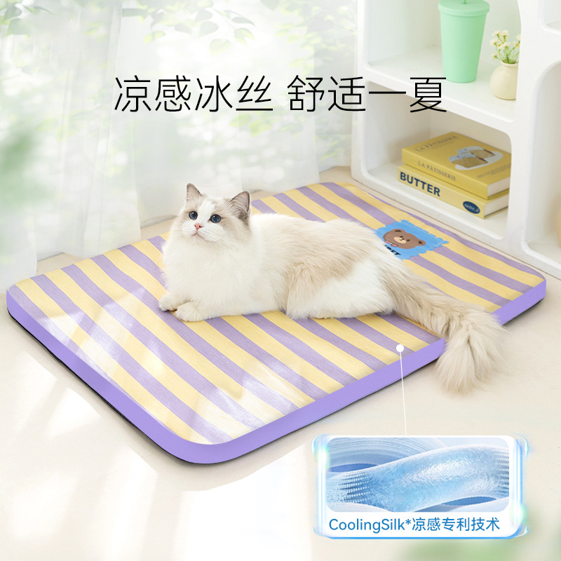 개 여름 테디 작은 개 만화 줄무늬 얼음 실크 매트 고양이 시원한 잠자는 매트 애완 동물 사육장스토어 가기