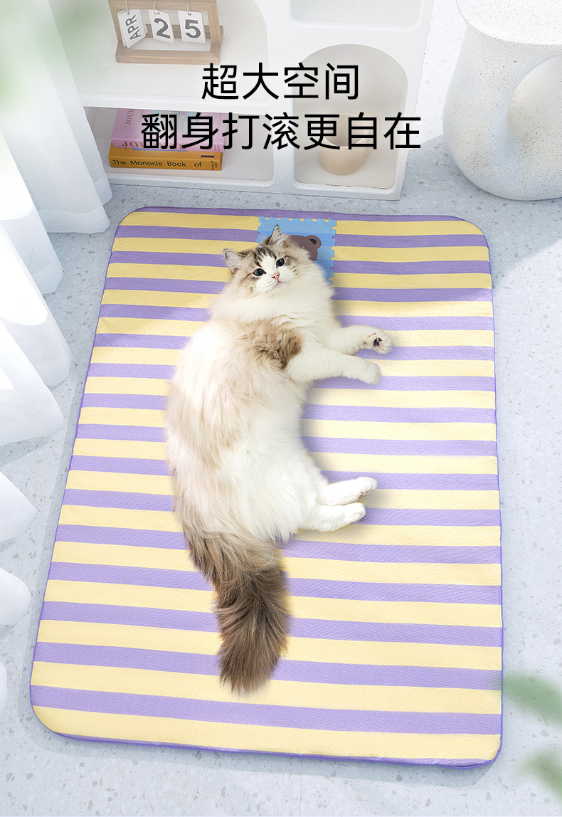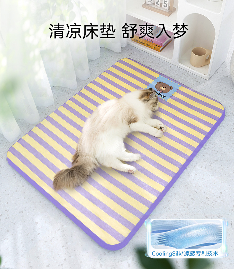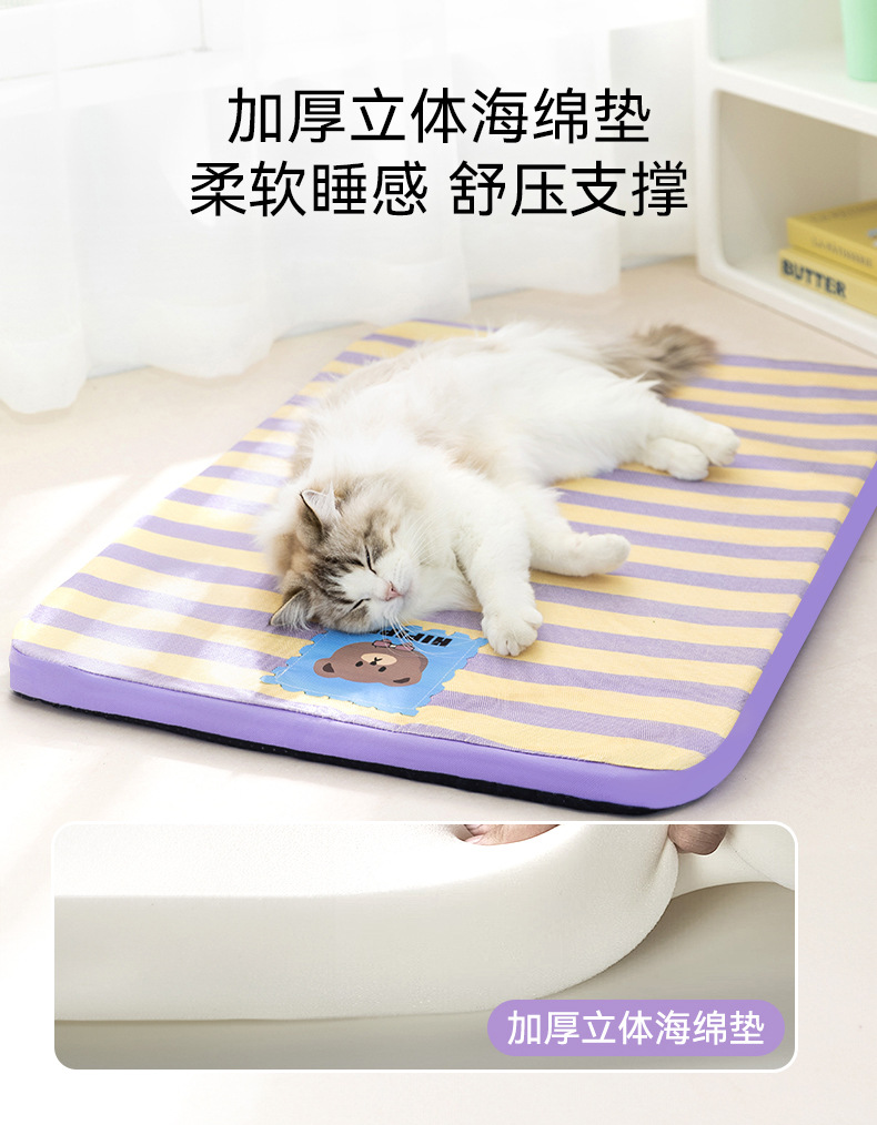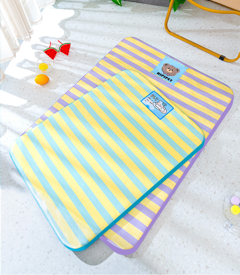 개 여름 테디 작은 개 만화 줄무늬 얼음 실크 매트 고양이 시원한 잠자는 매트 애완 동물 사육장