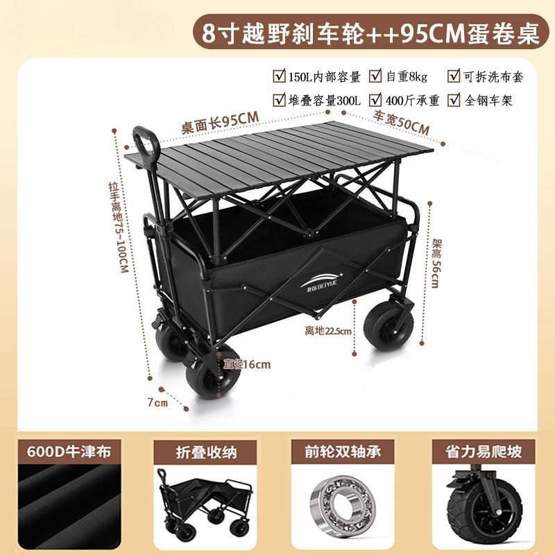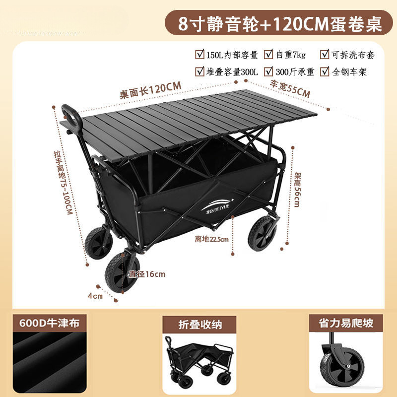 • 블랙 [두꺼운 옥스포드 천/두꺼운 브래킷]-[120CM 에그롤 테이블 세트] 8inch 넓어진 바퀴 + 테이블